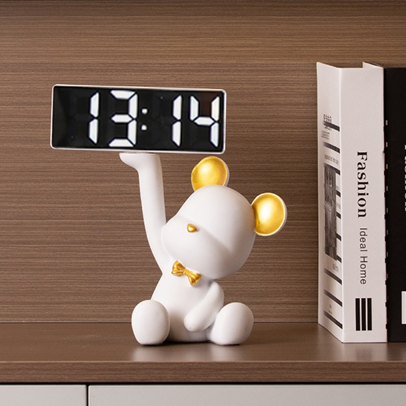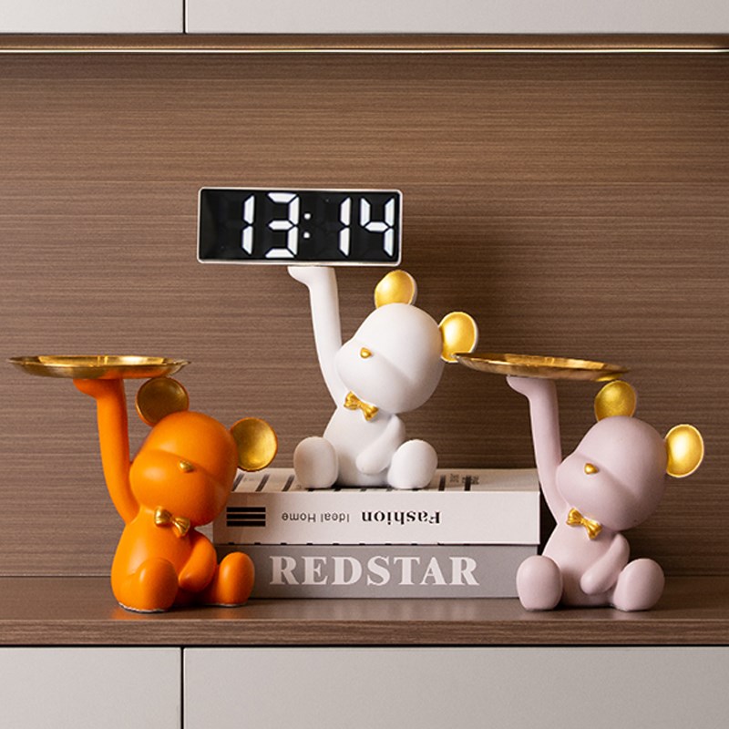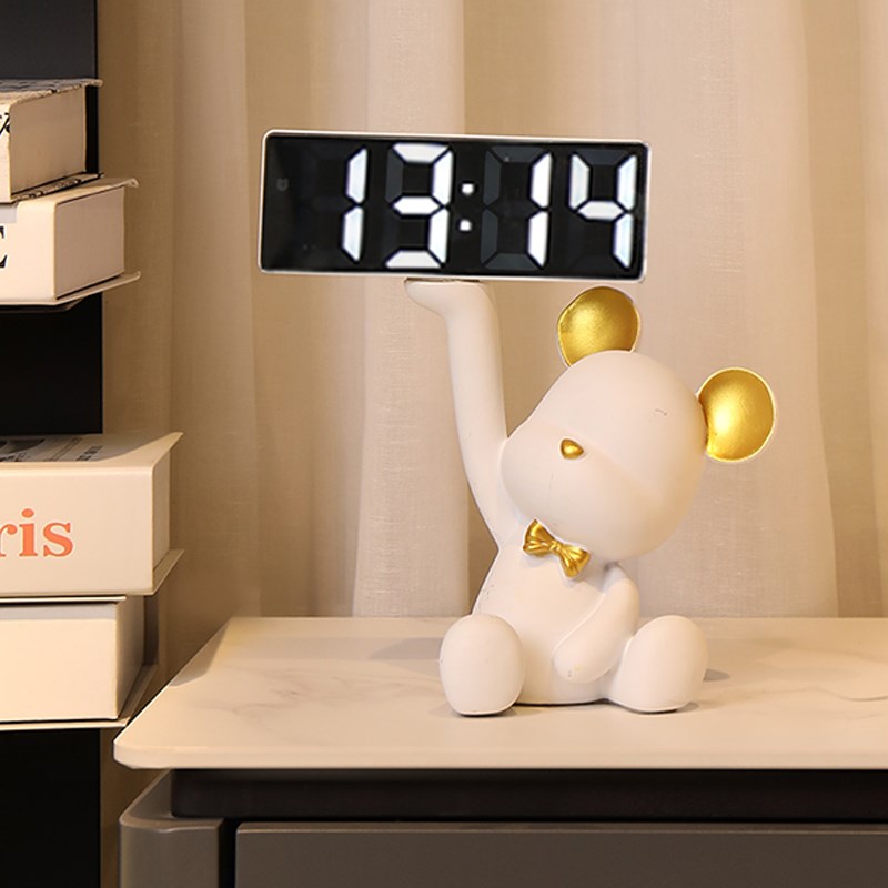 创意暴力熊摆件玄关托盘收纳客厅家用led智能电子时钟闹钟表台式