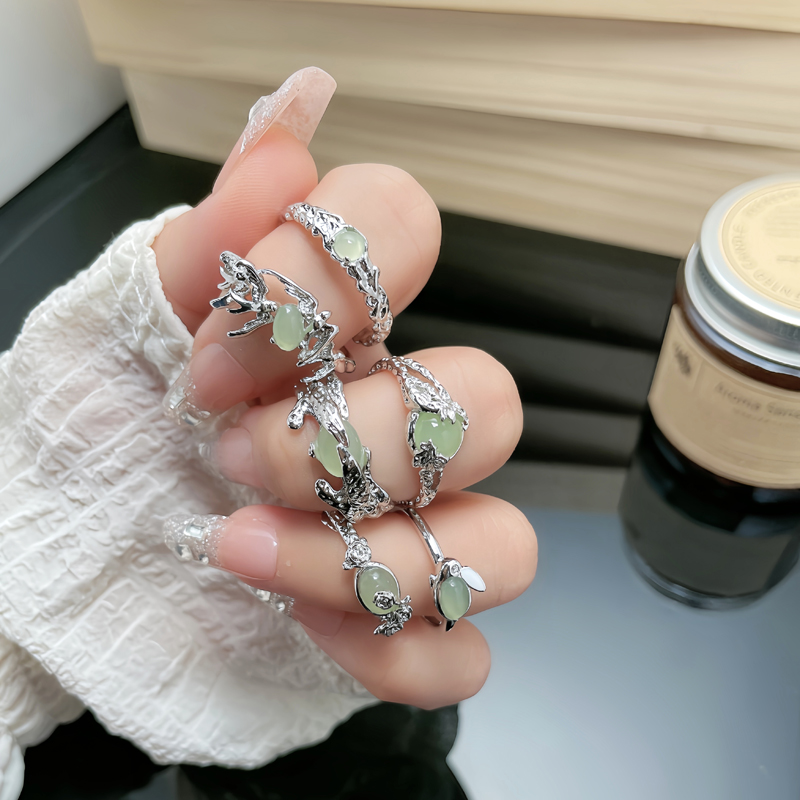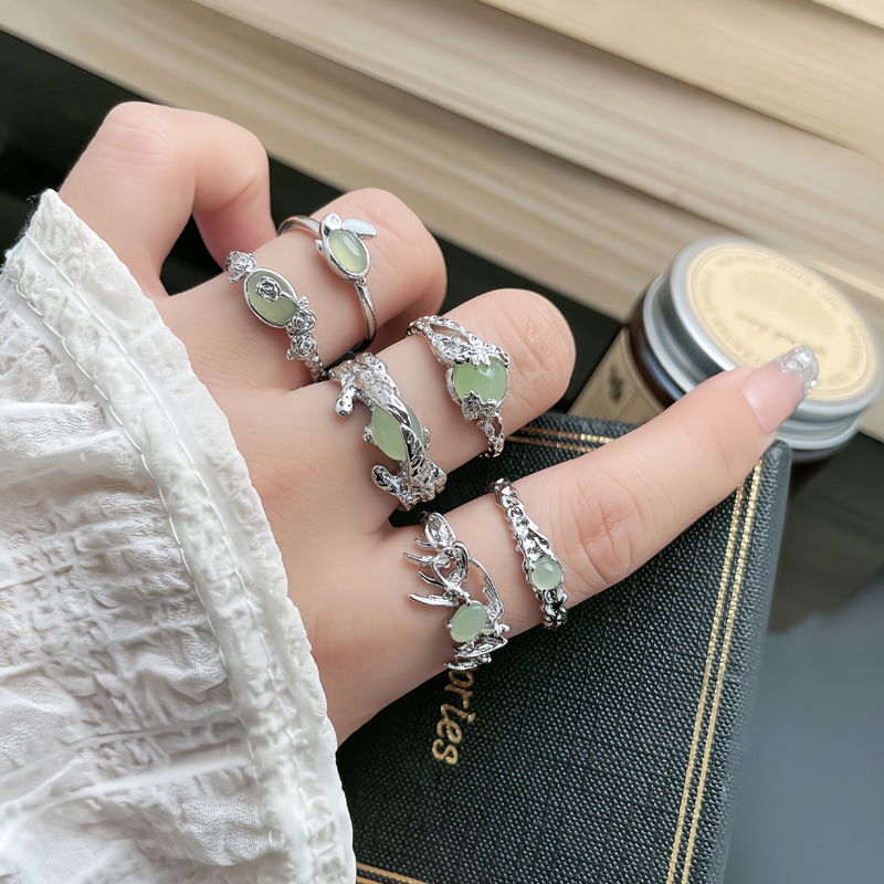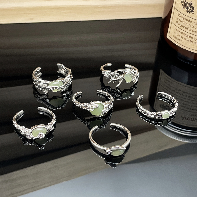 高级感气质仿玉石时尚开口戒指女百搭小众冷淡风不规则肌理食指环