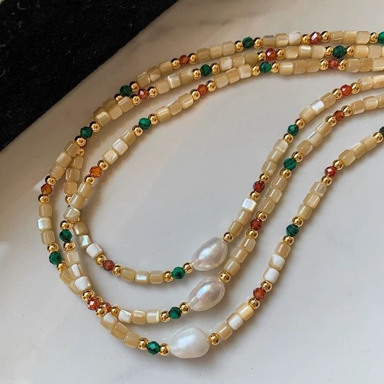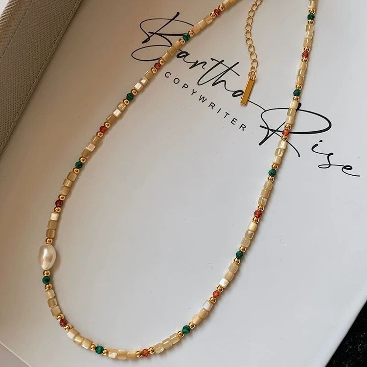 天然淡水彩色多巴胺石头串珠珍珠项链女高级感轻奢小众锁骨链颈链