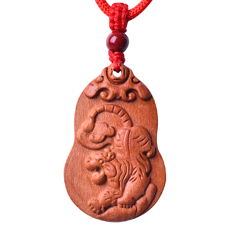 桃木十二生肖吊坠本命年挂件兔子老虎项链儿童小孩男女款饰品礼物