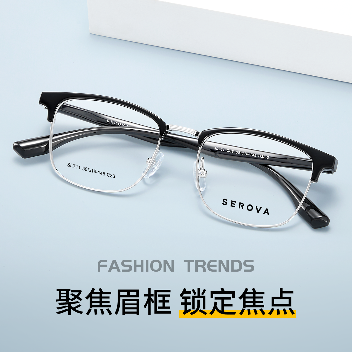 施洛华眼镜近视板材腿眼镜框眉毛复古眼镜架可配带度数眼镜SL711