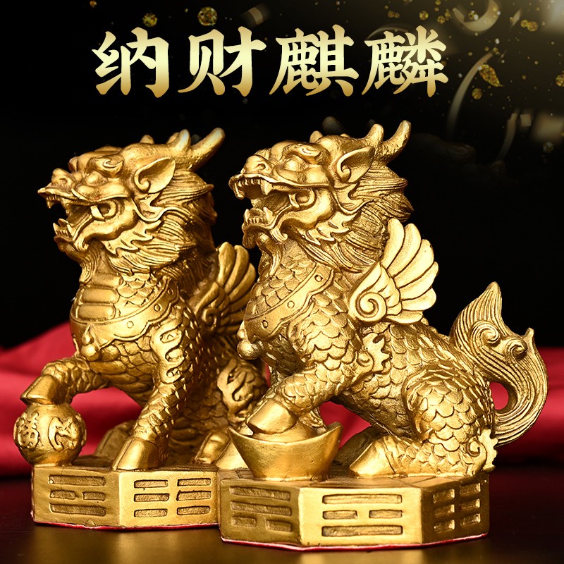 寅亥堂纯铜八卦麒麟摆件家居客厅书房玄关入户门公司前台收银台放