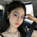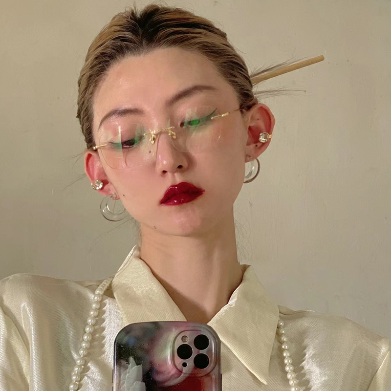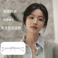 无边框斯文近视眼镜女可配度数防蓝光金丝纯欲钛架方形平光眼睛男