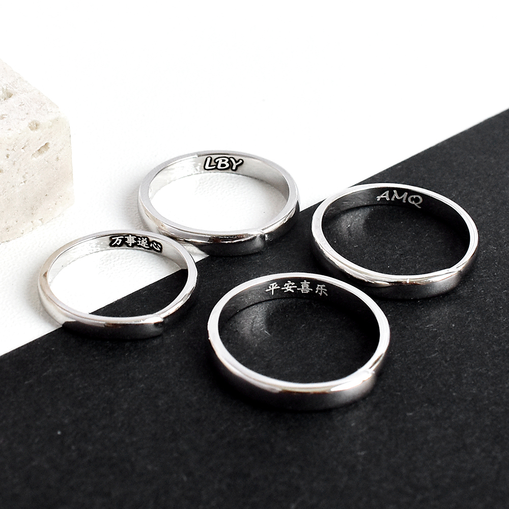 刻字定制情侣戒指一对S925纯银小众设计素圈光面素戒可调节对戒