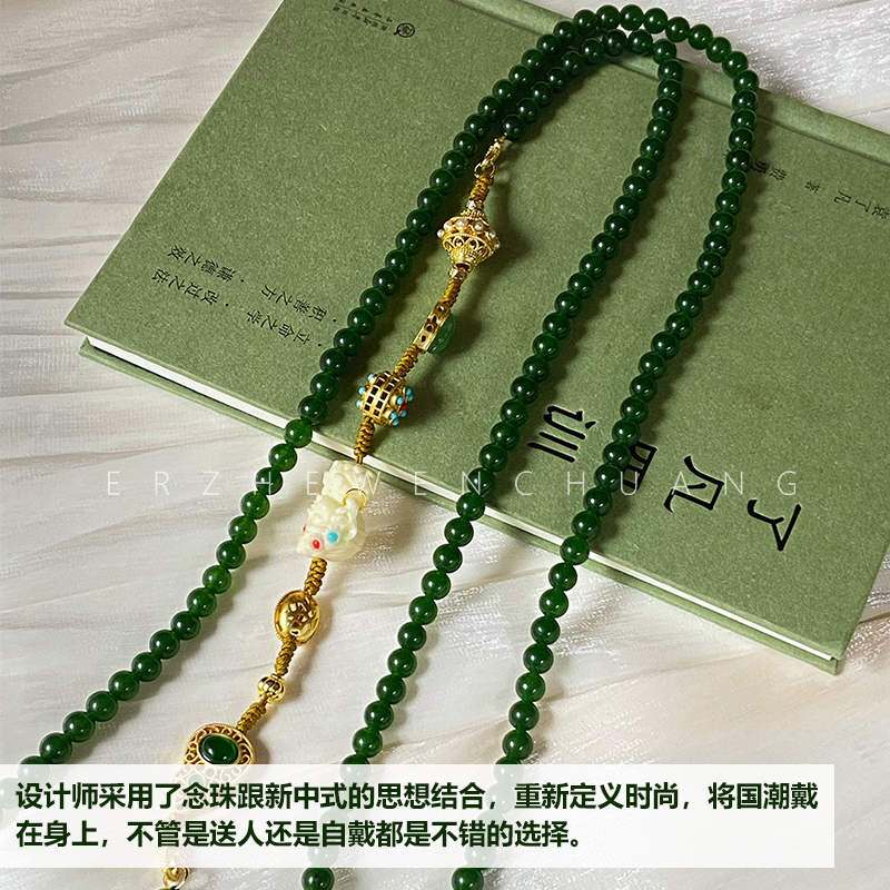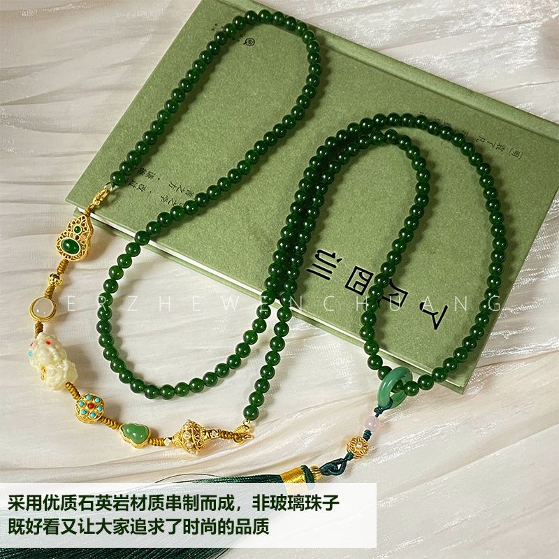 新中式国风斜挎链长款复古串珠项链一款多戴流苏挂坠毛衣链配饰女