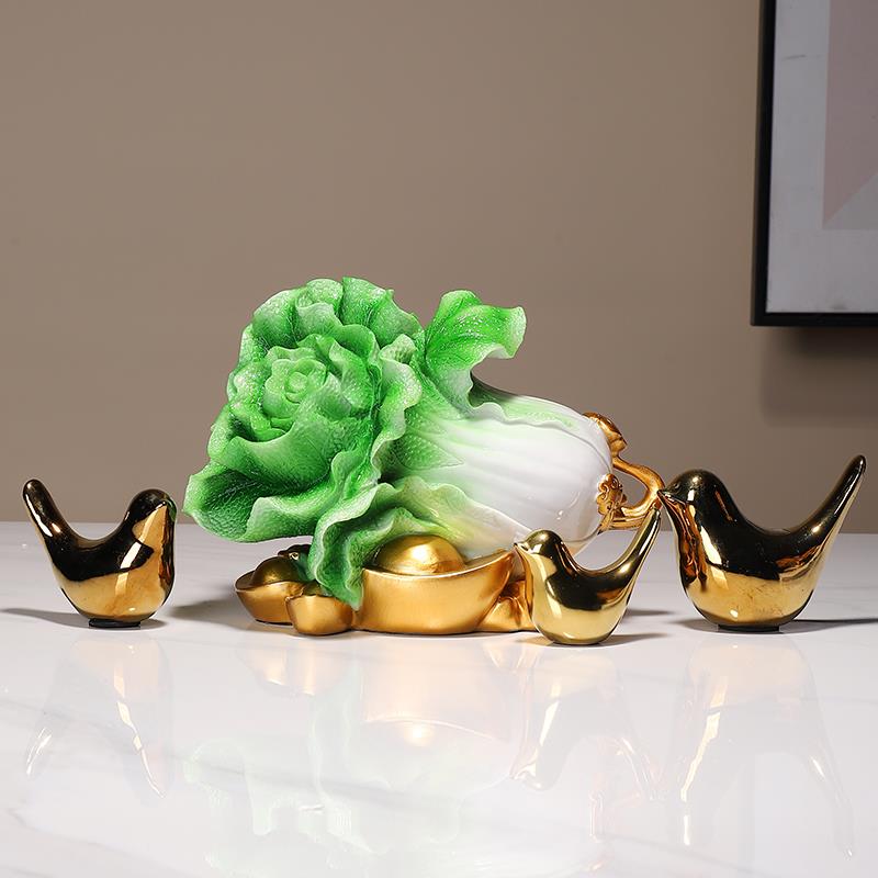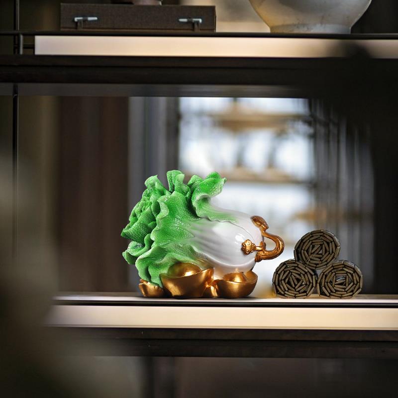 新中式百财如意玉白菜摆件玄关客厅乔迁家居摆设创意办公桌装饰品