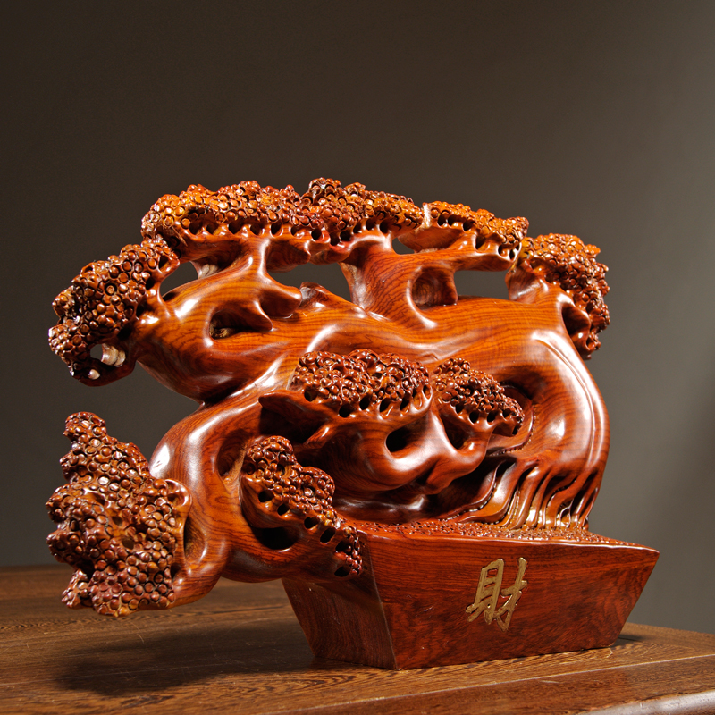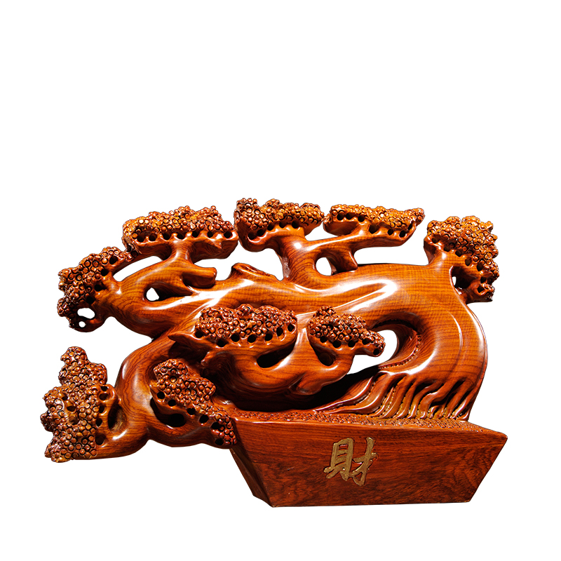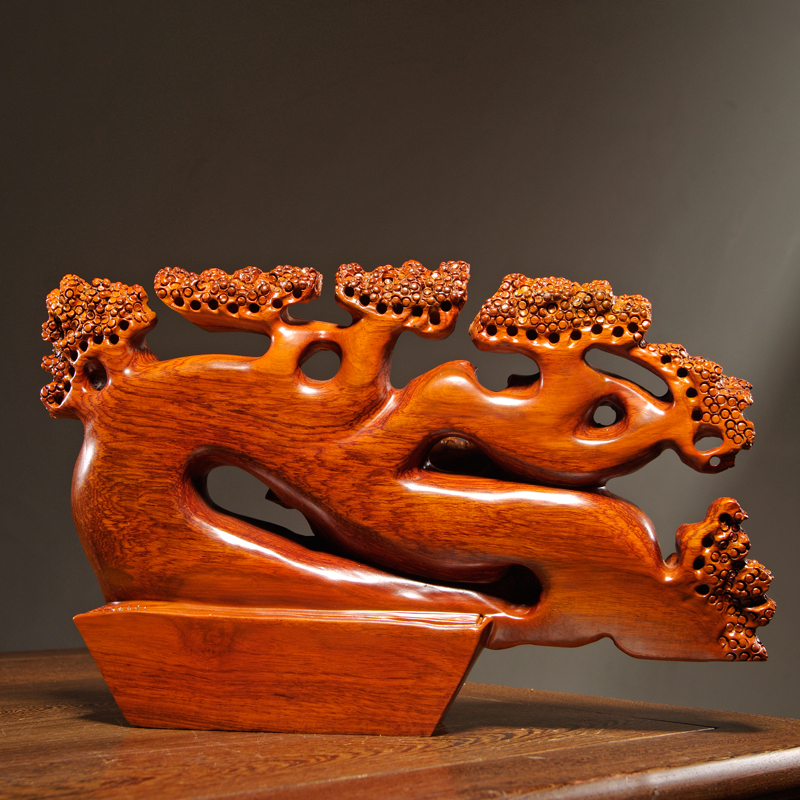 花梨木雕迎客松摆件实木家居客厅办公装饰红木工艺品开业乔迁礼品