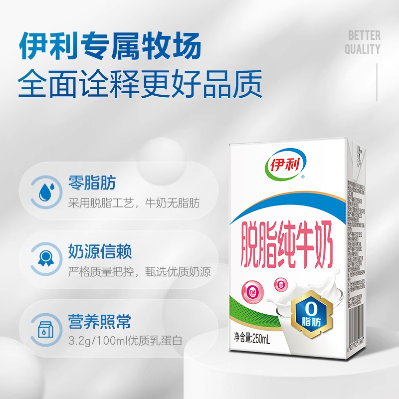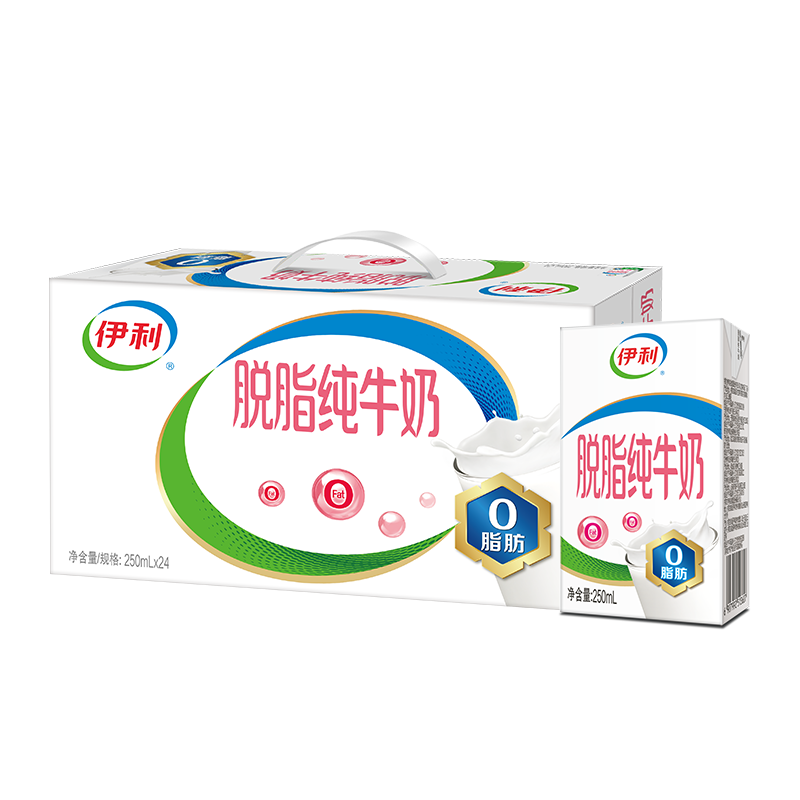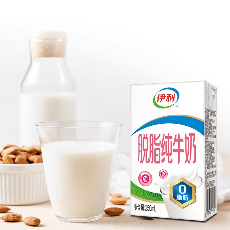 【9月新货】伊利脱脂纯牛奶250ml*24盒整箱成人全脂牛奶纯奶