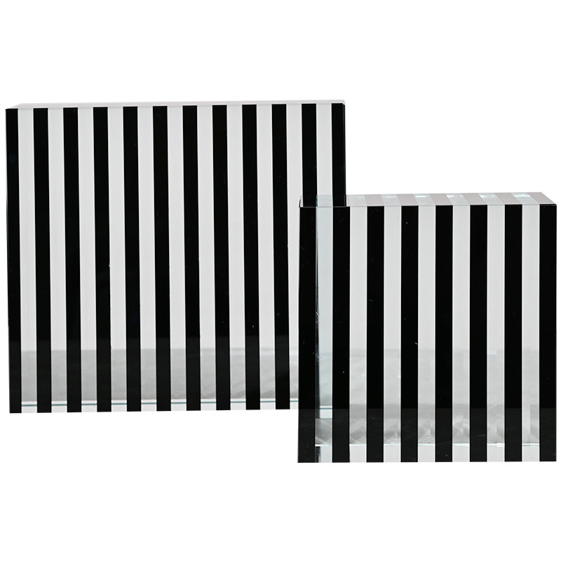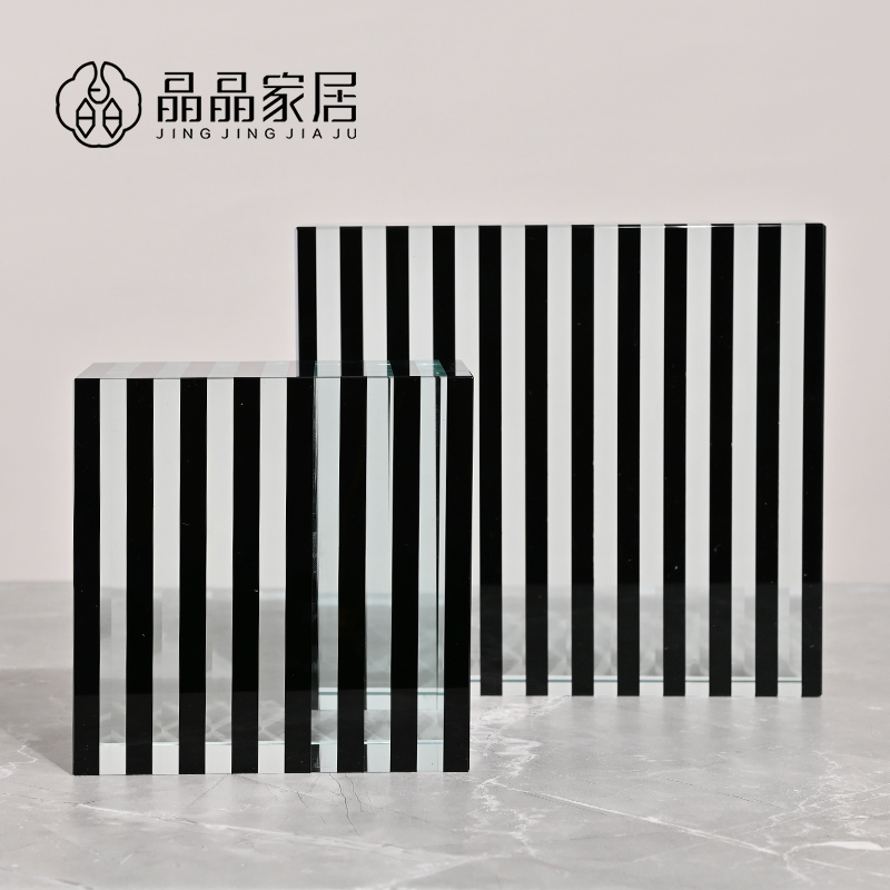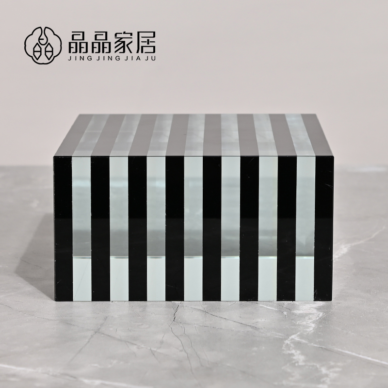 现代简约轻奢条纹正方形条纹水晶桌面摆件底座酒柜玄关家居饰品