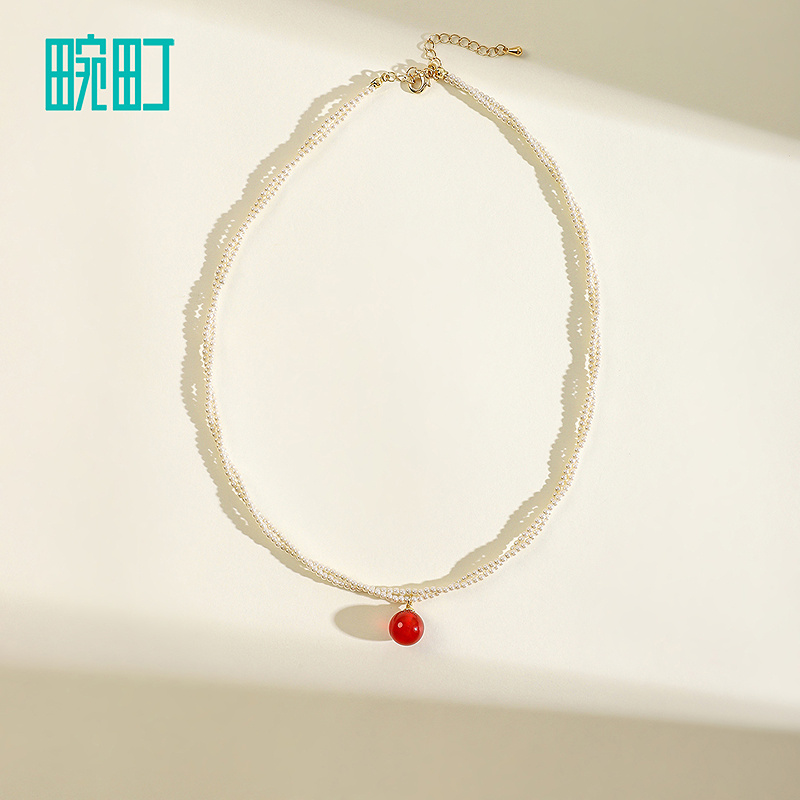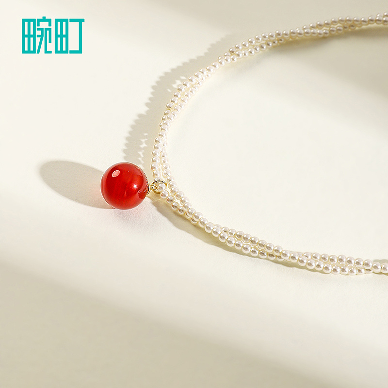 畹町优雅红珠项链复古法式高级感优雅百搭珍珠短链锁骨链