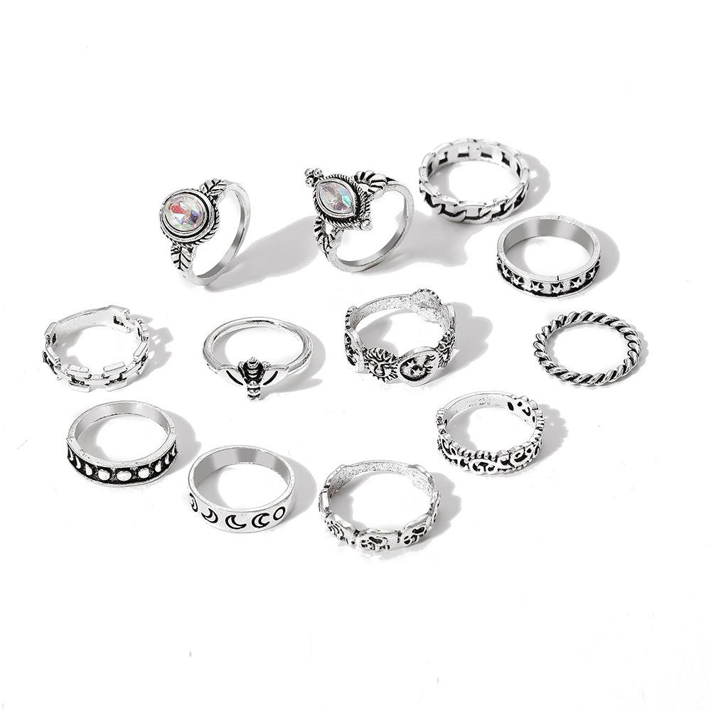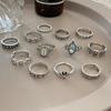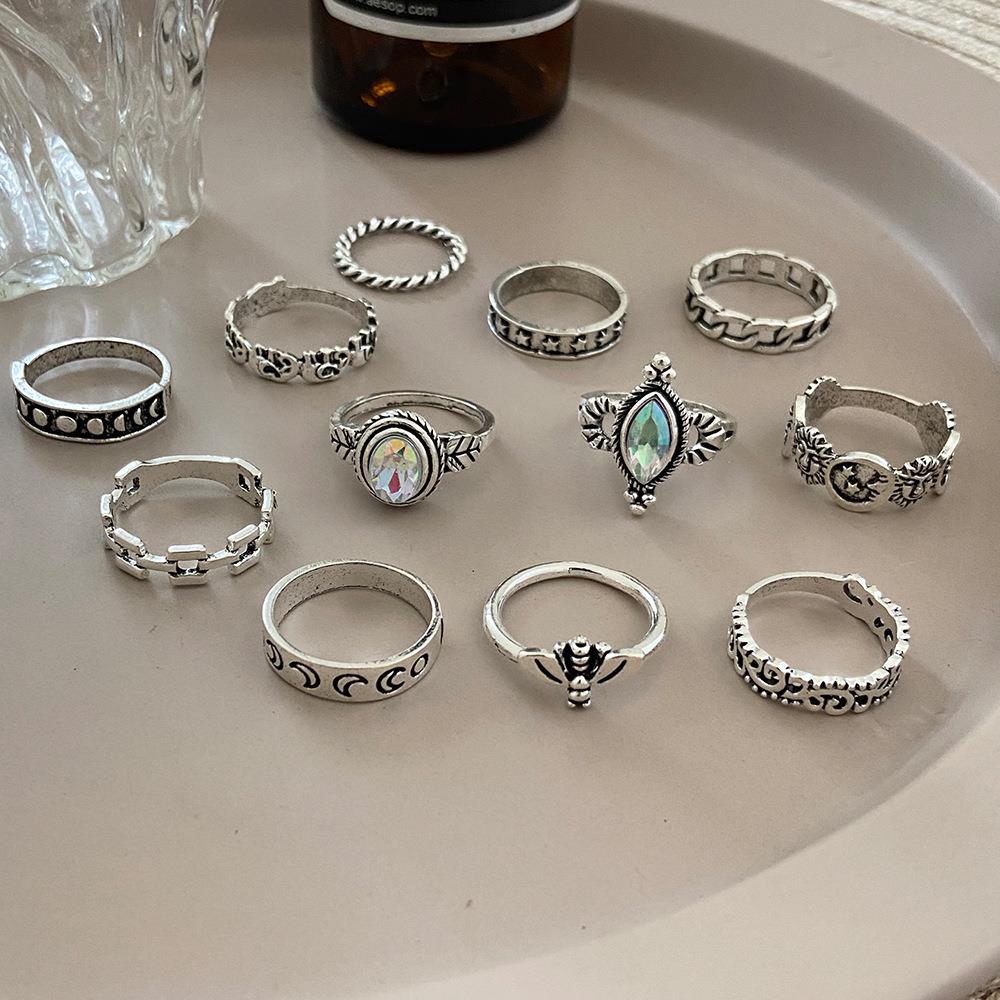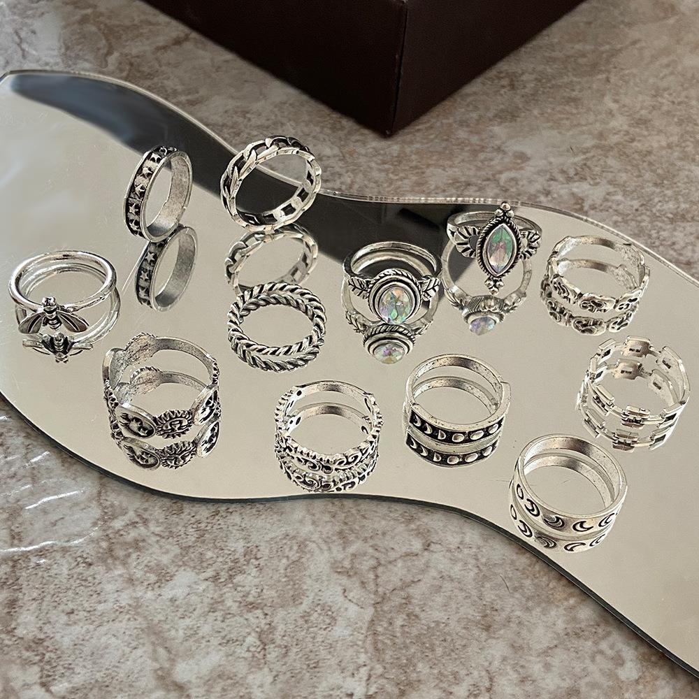 15pcs set Diamond love rings women女士覆古镂空镶钻戒指15件套