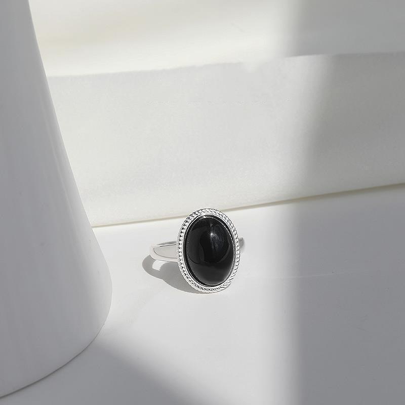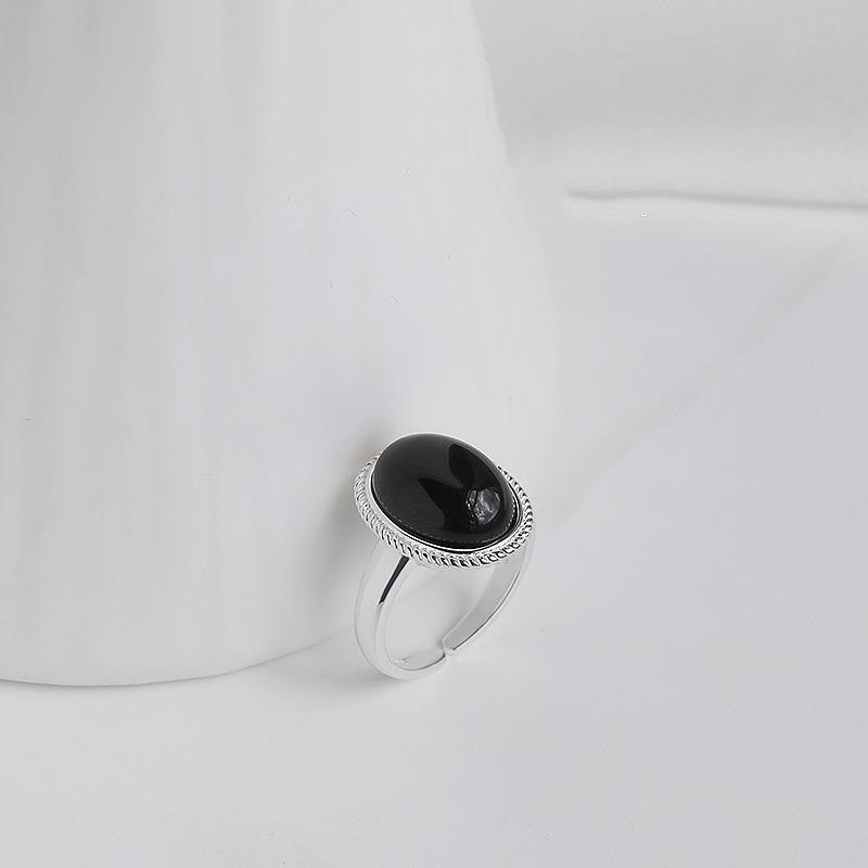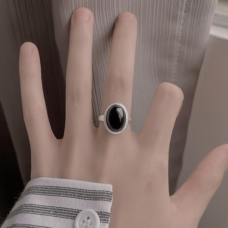 一恋黑色椭圆仿玉石戒指女个性时尚高级感开口指环甜酷食指