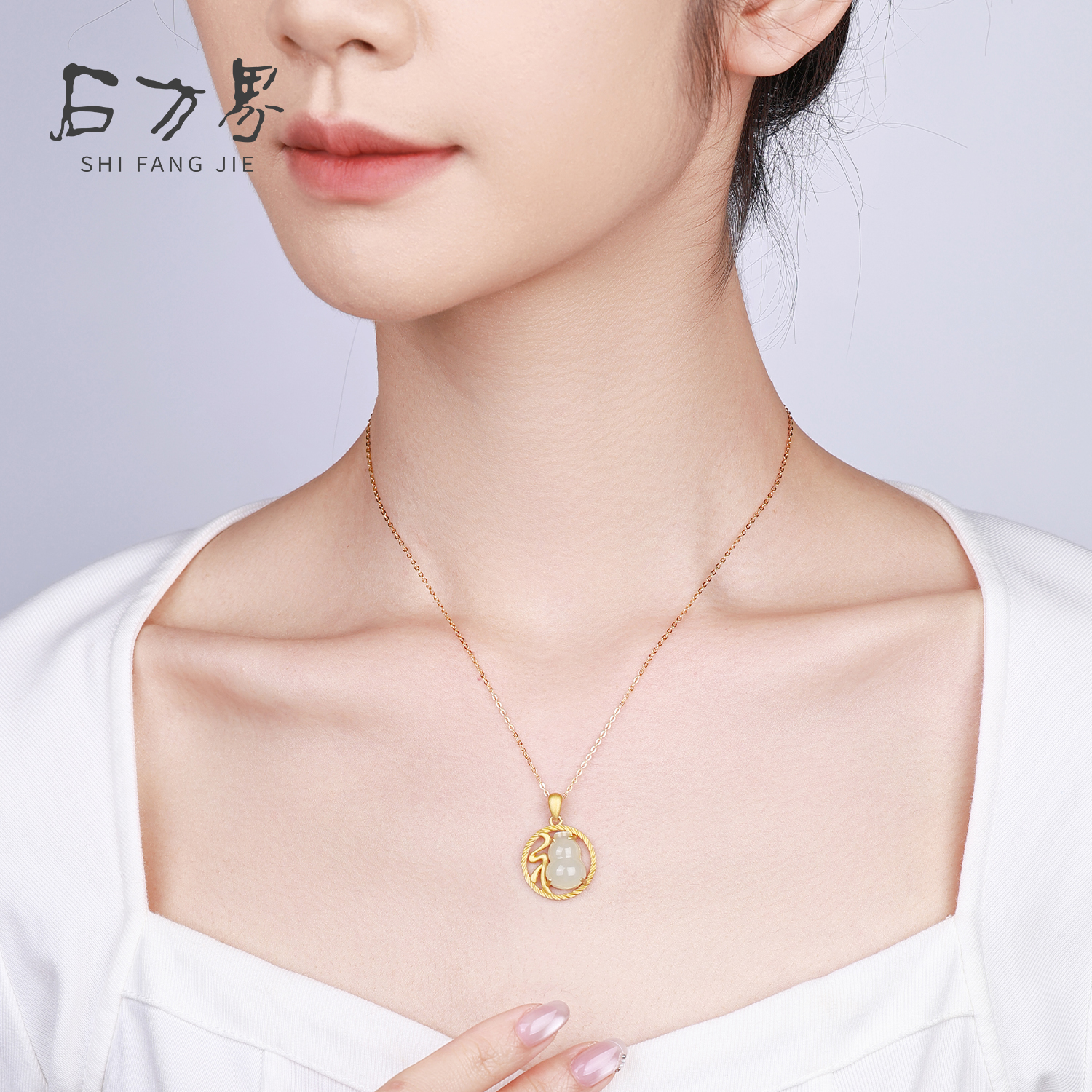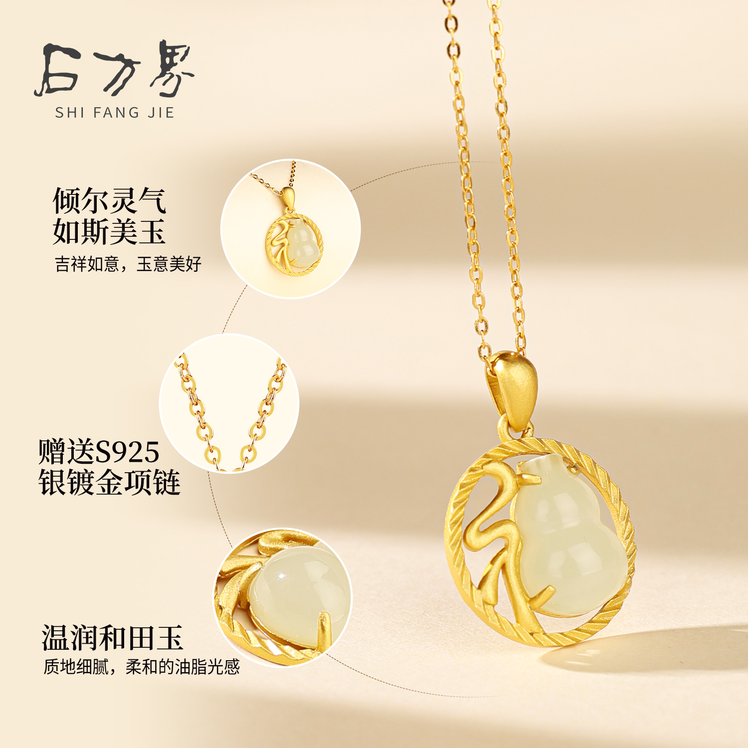 石方界S925银和田玉葫芦吊坠女款天然玉石高级感项链闺蜜生日礼物