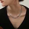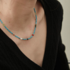 WEARRING 蓝松石项链串珠宝石宫廷风复古时尚小众设计感黄铜镀金