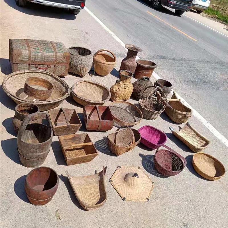 极速民俗老物件竹编篮子木筐提筐木桶斗H笠簸箕怀旧复古传统工艺