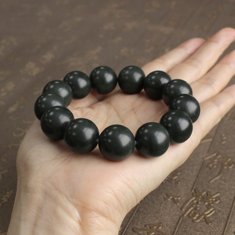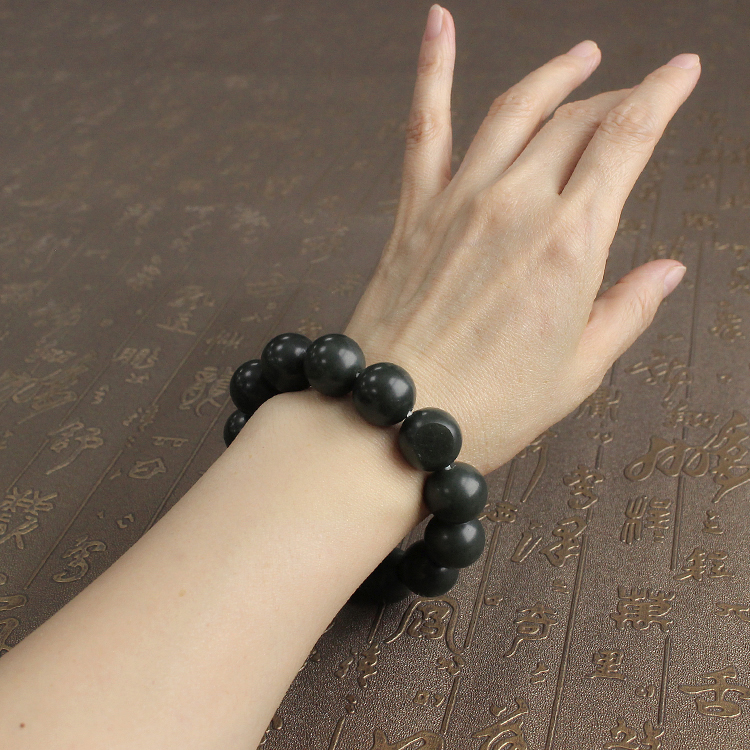 16mm青玉籽料圆珠手串 有原皮 新疆和田玉朕®开仓