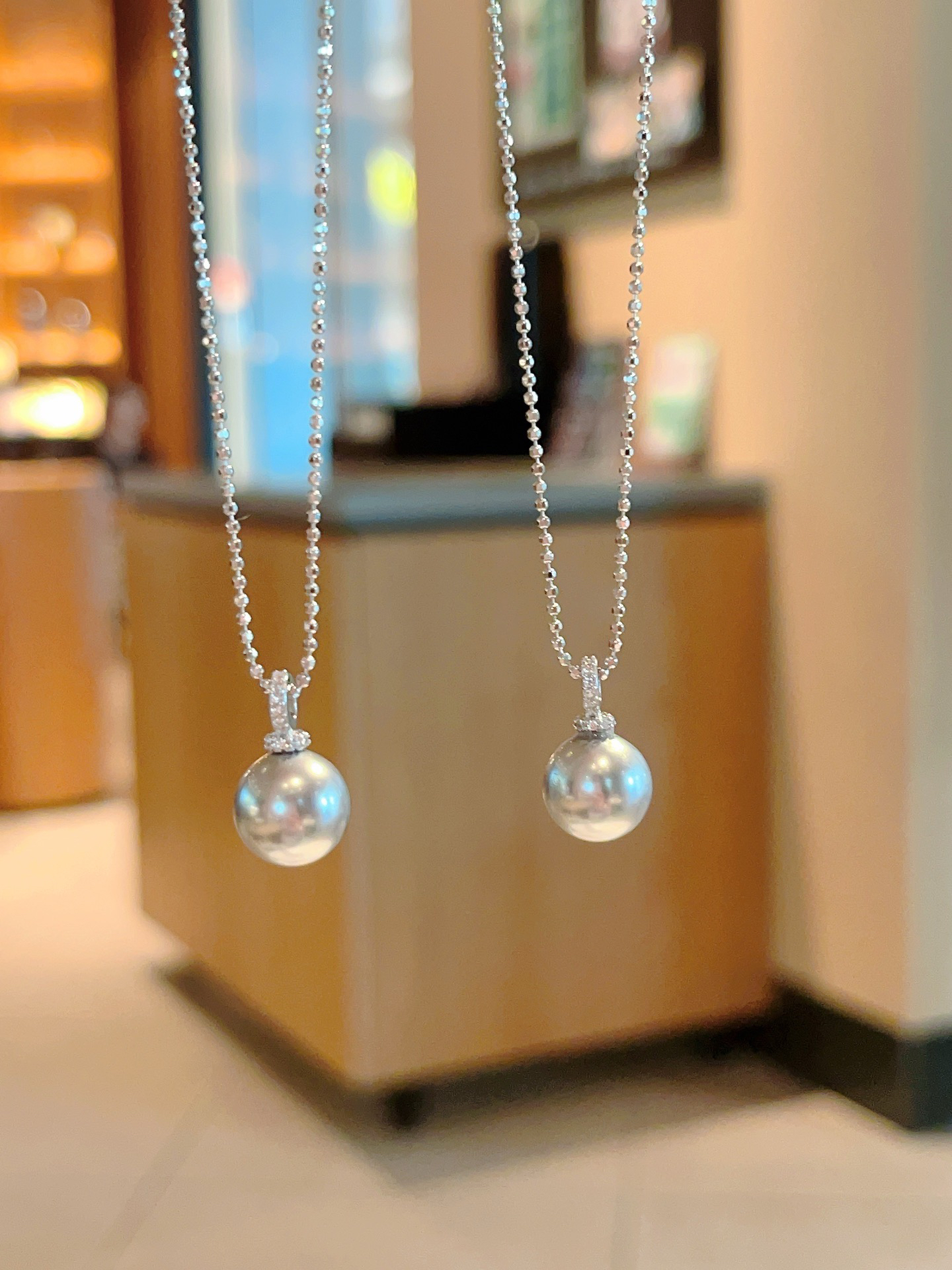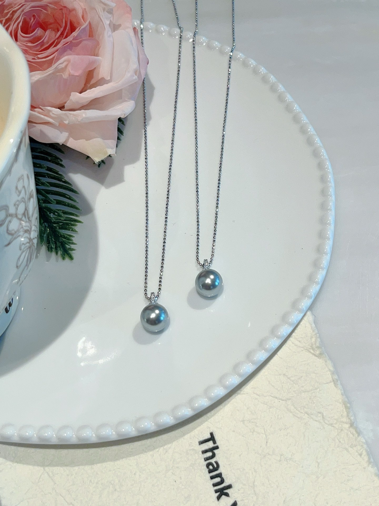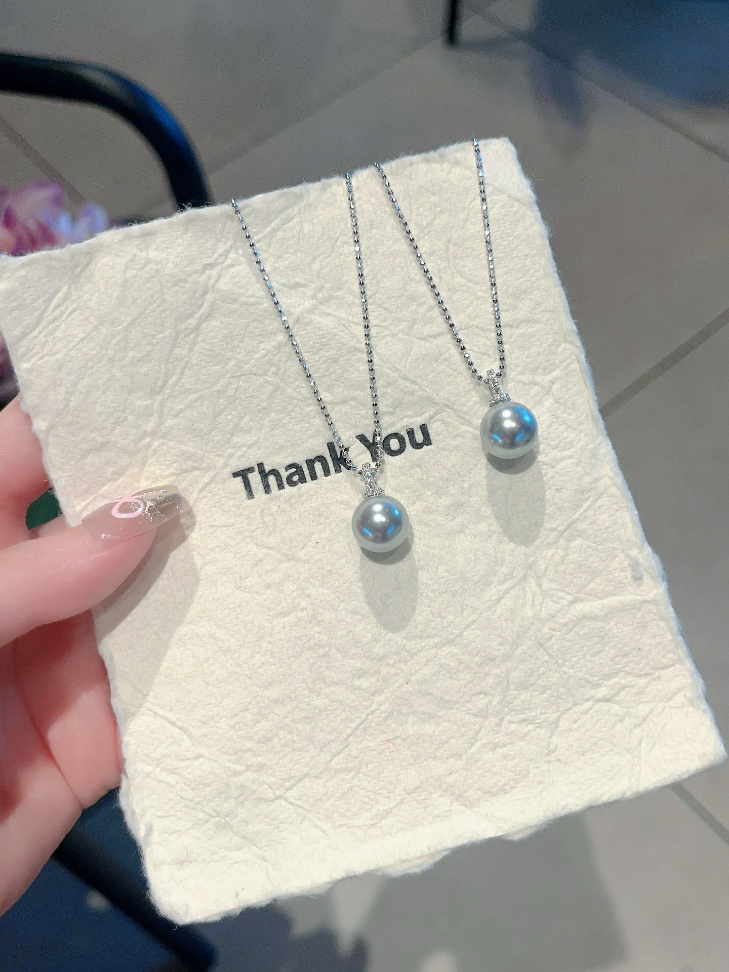 S925银纯银新款珍珠高级灰项链不褪色七夕送礼盒礼袋顺丰包邮8