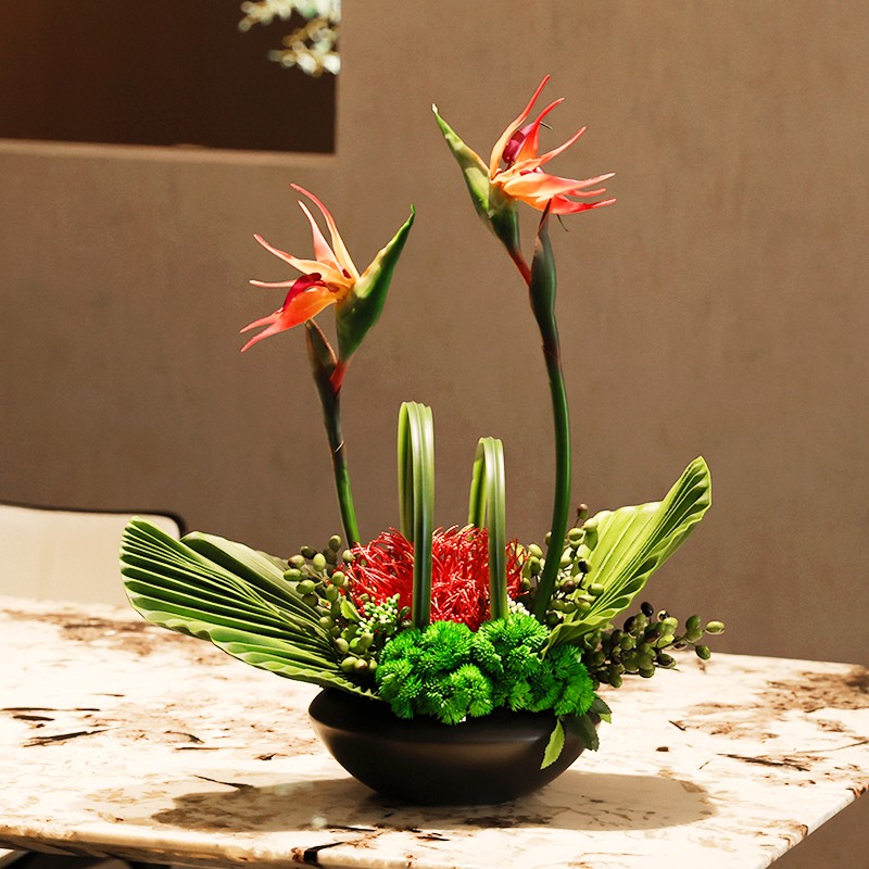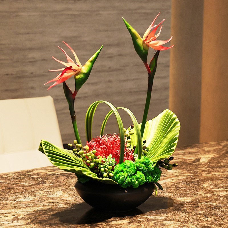 酒店餐桌花转盘摆花仿真花圆形圆桌餐厅桌面中间假花别墅高档装饰