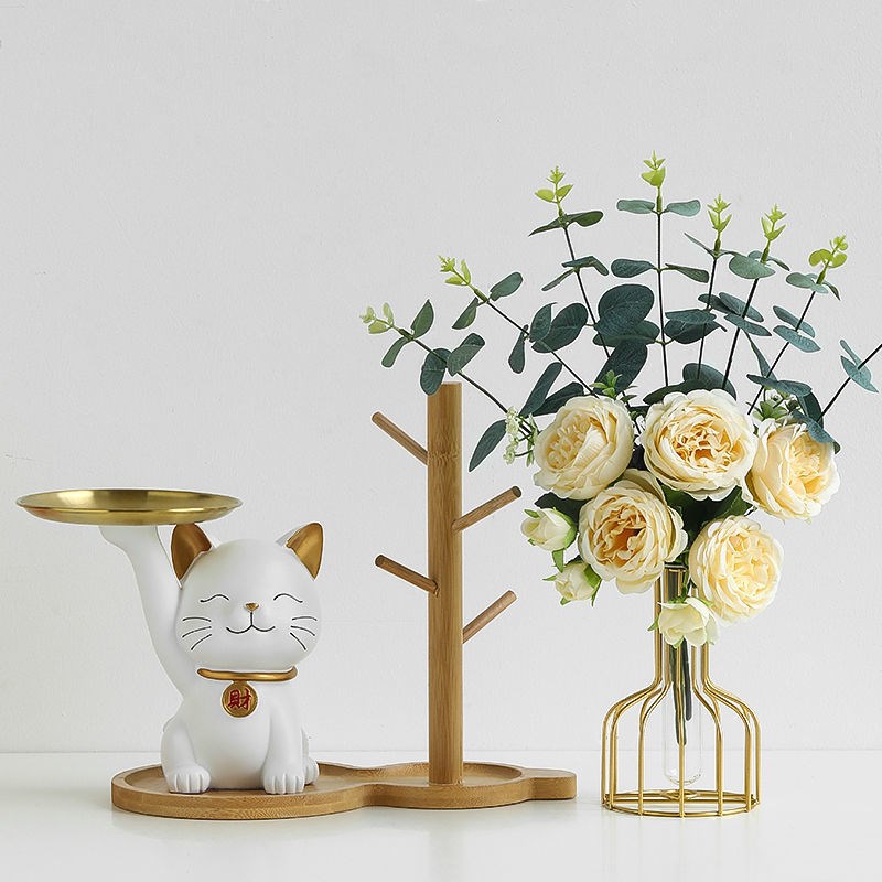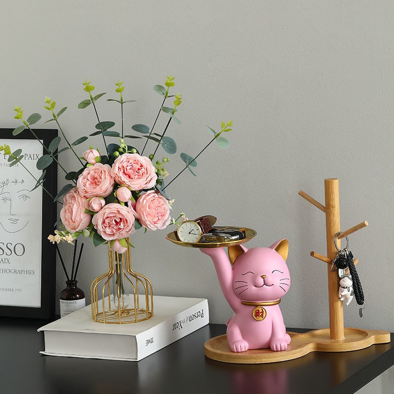 招财猫ins风客厅桌面玄关钥匙收纳装饰摆件前台装饰品开业送礼物