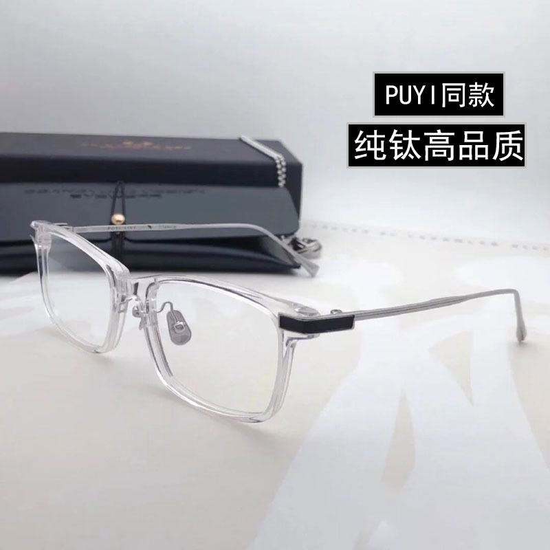 陈道明同款日系新款超轻纯钛商务儒雅男近视方形透明眼镜框配近视