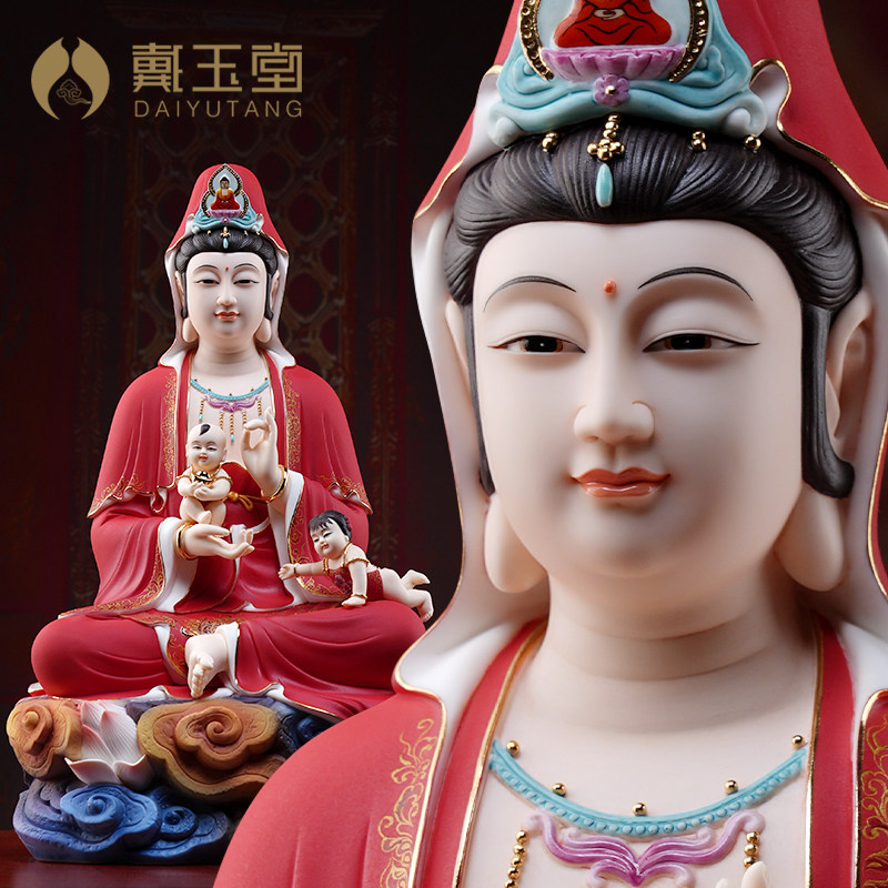 戴玉堂精工彩龙凤送子观音菩萨像佛像供奉家用德化白瓷观世音摆件