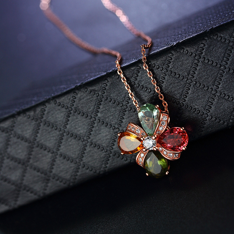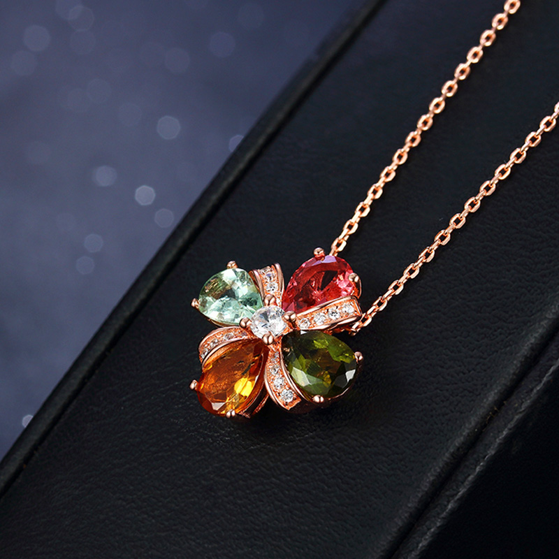 小肥珠宝天然巴西碧玺吊坠女彩色花状925银镀玫瑰金项链日韩潮流