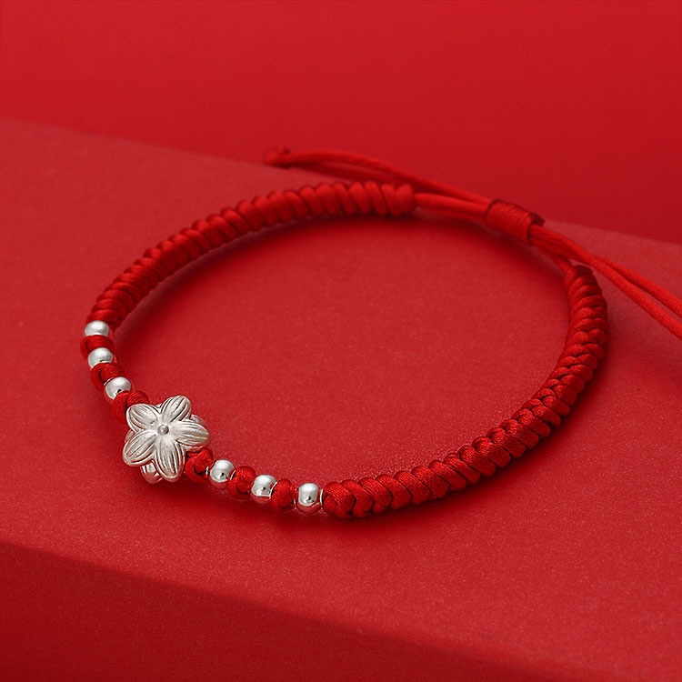 999纯银好事连连手链女足银莲花莲蓬珠编织红绳手绳爆款