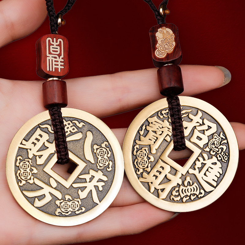 用纯黄铜招财进宝铜钱古币车钥匙扣八方来财挂件饰品2026年新款
