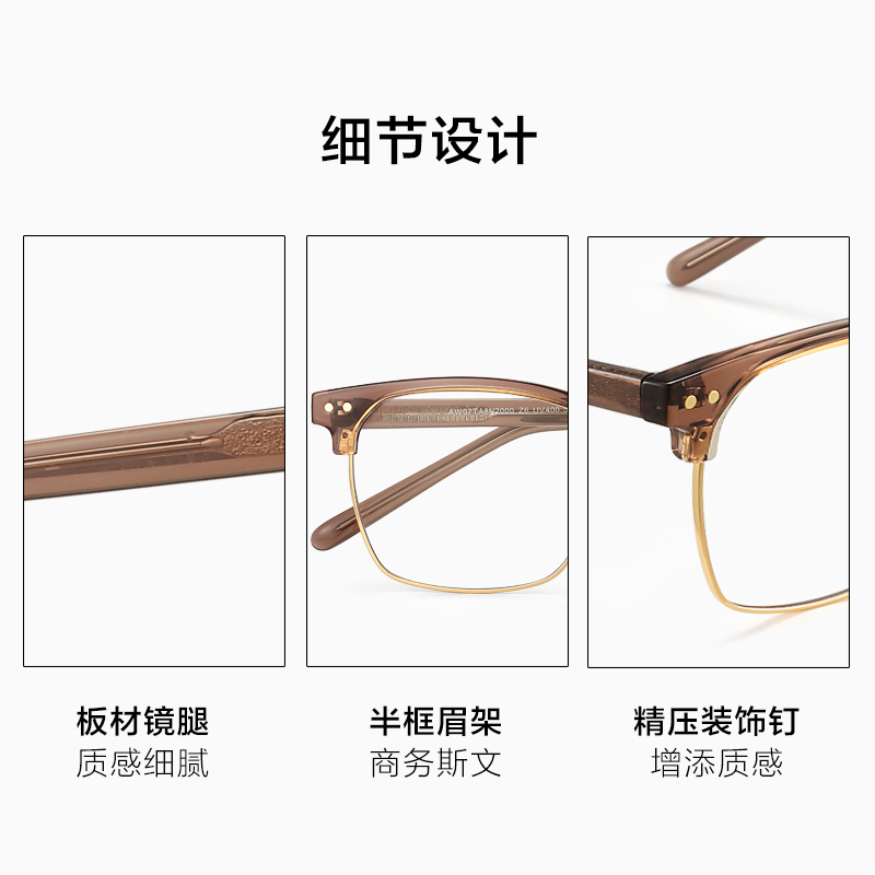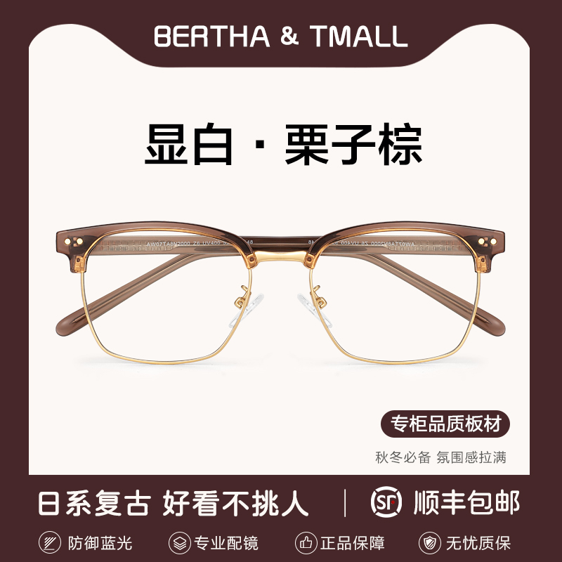 眼镜女近视可配有度数茶色半框眉架复古素颜防蓝光大脸显瘦眼睛