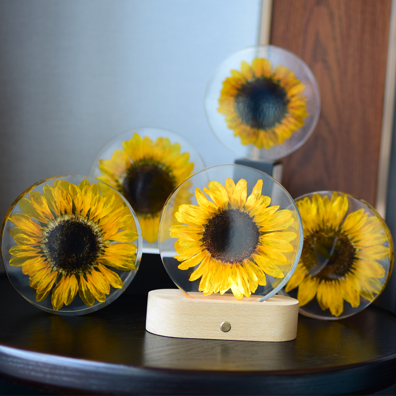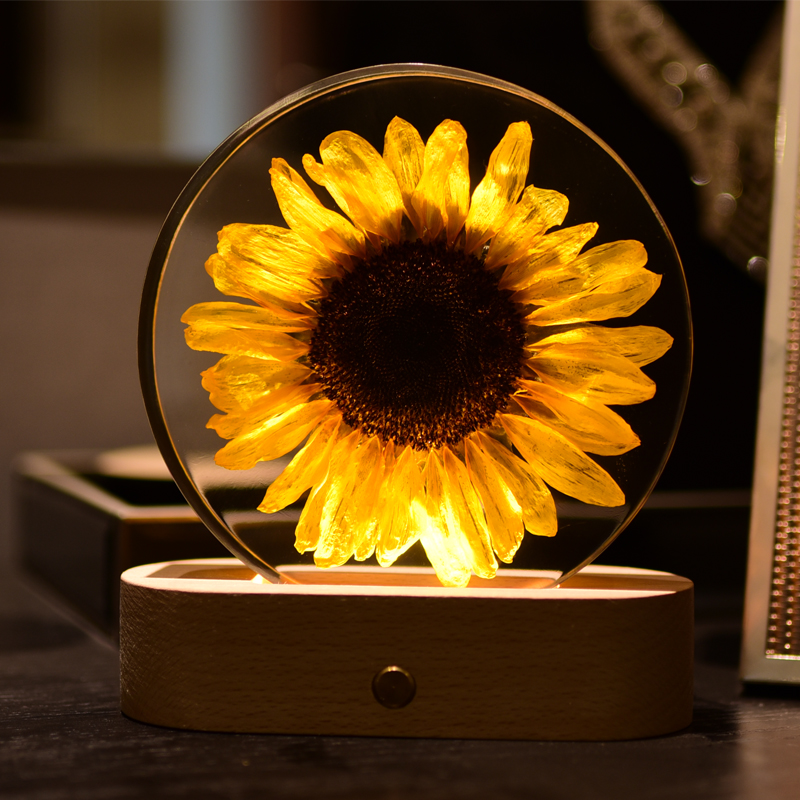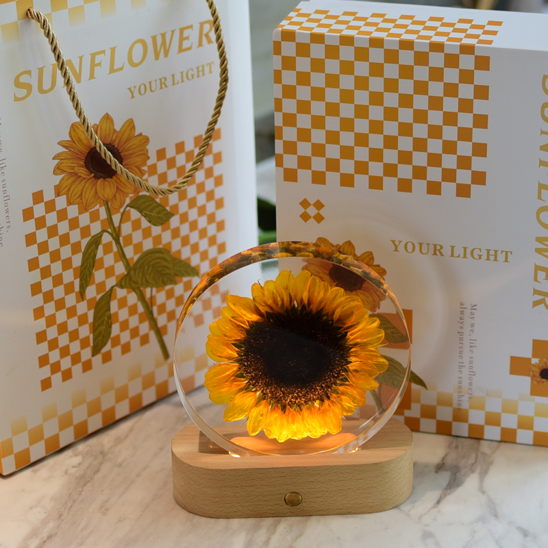 向日葵装饰台灯卧室氛围灯永生花树脂桌面摆件轻奢高档创意礼物