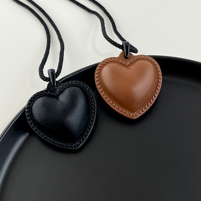 fever同款黑色皮革爱心吊坠项链女小众设计秋冬毛衣链气质配饰