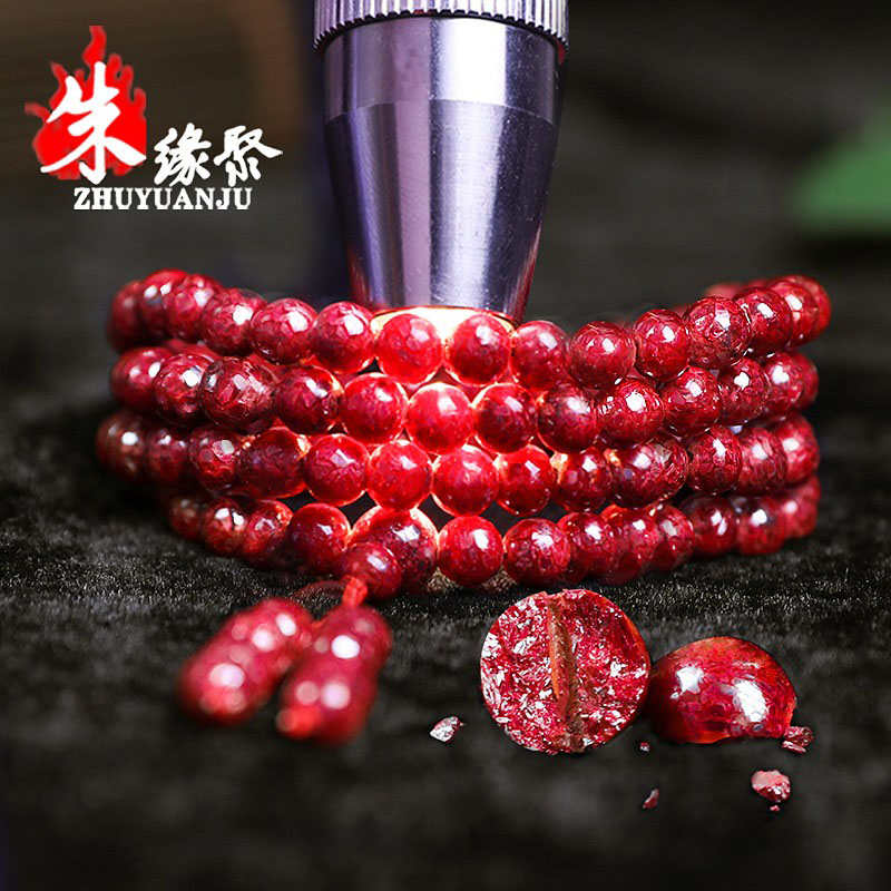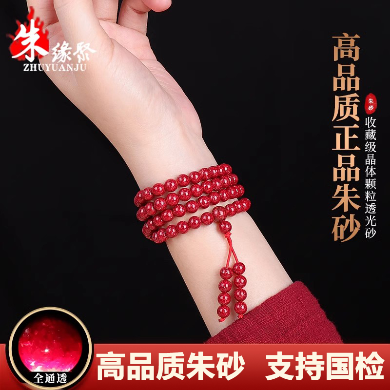 朱砂手串男官方旗舰店正品108颗原石晶体透光圆珠蛇年原矿手链女