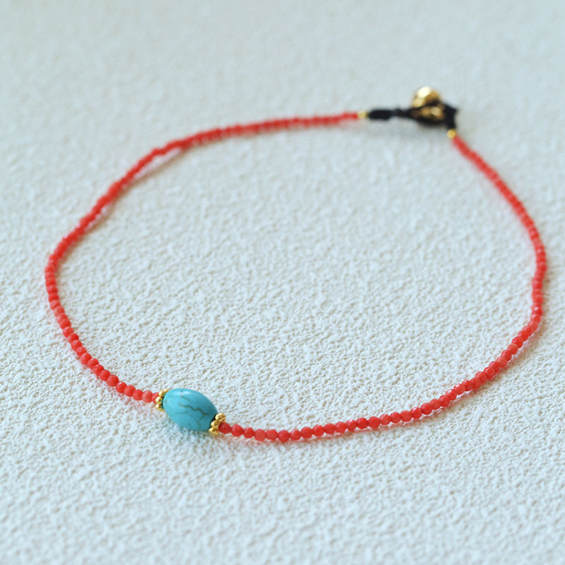 TU家【事事如意】新中式红米珠蓝松串珠项链复古高级感叠搭锁骨链