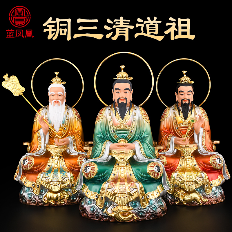 黄铜三清神像太上老君铜像彩绘道家祖师像元始天尊摆件供奉大号