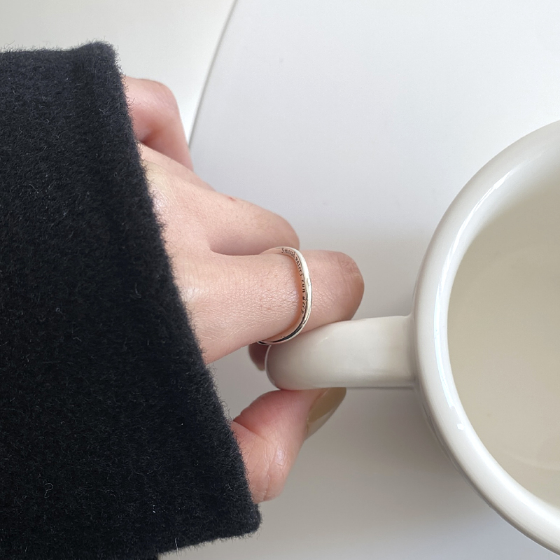 s925纯银戒指女简约轻奢英文字母波浪小众设计食指戒时尚个性指环