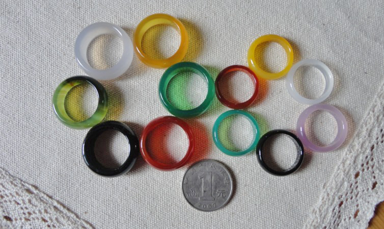 天然白黑红绿色冰种玛瑙玉髓戒指 玉石指环大拇指扳指男女款 食指