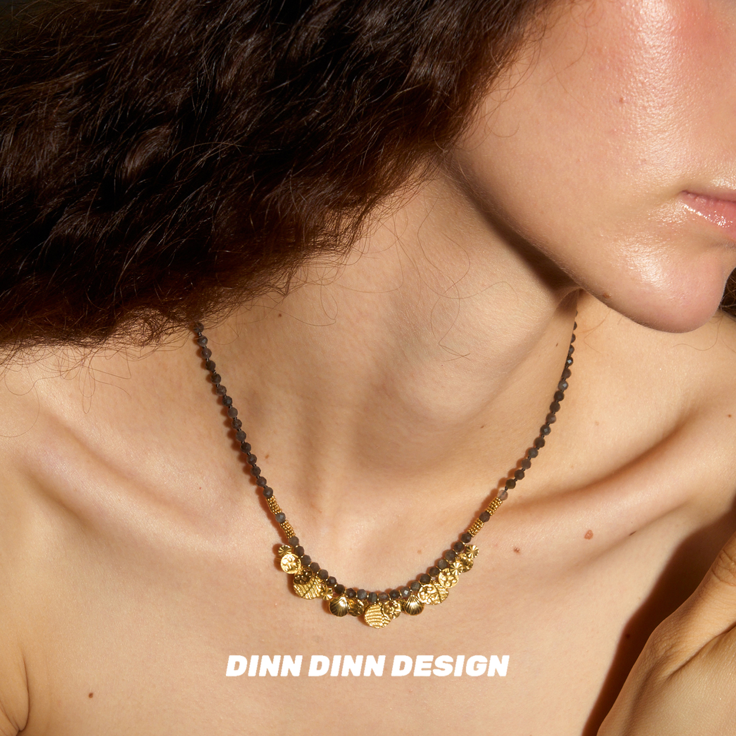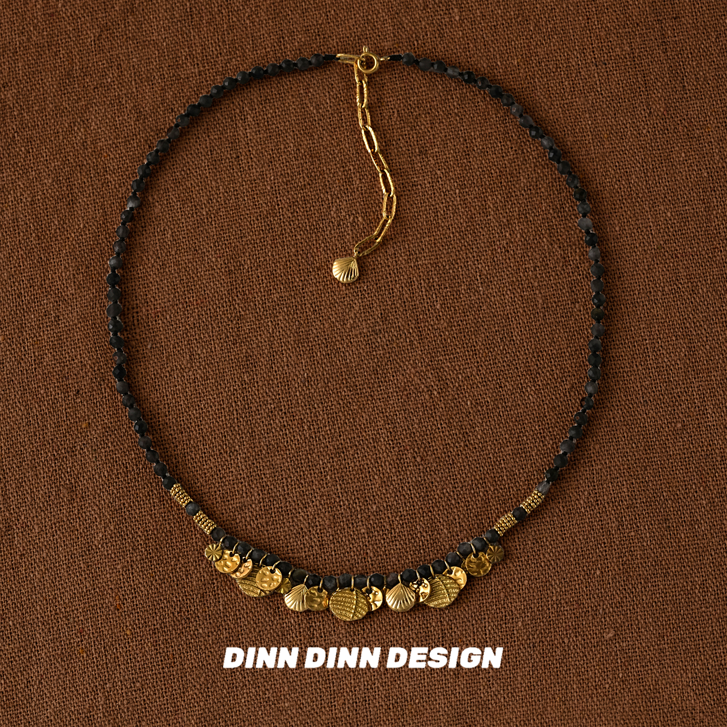 Dare买手店DINN DINN DESIGN黑曜石金色片片串珠项链度假民族风女