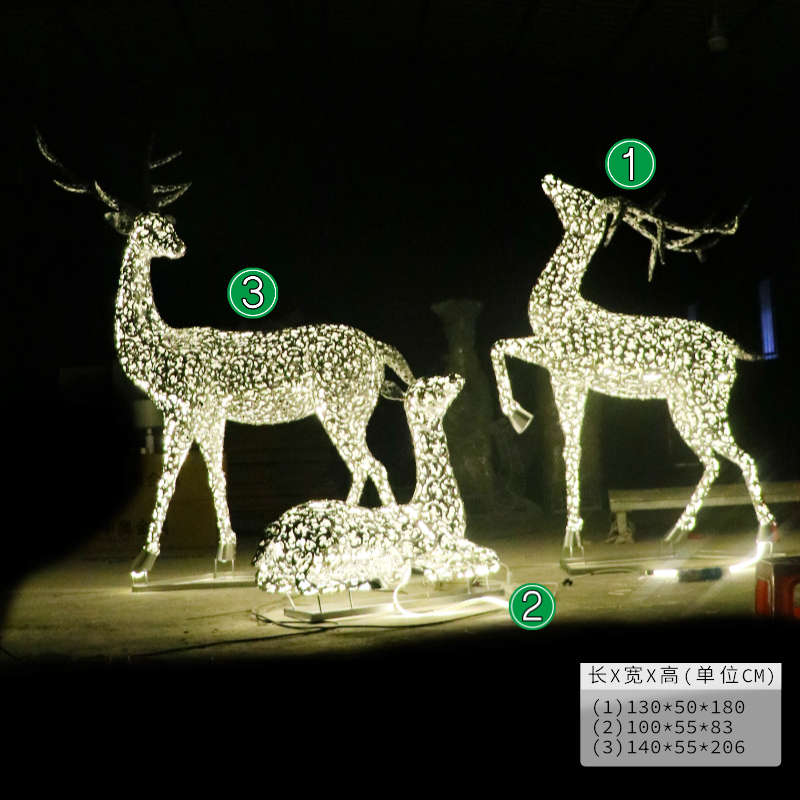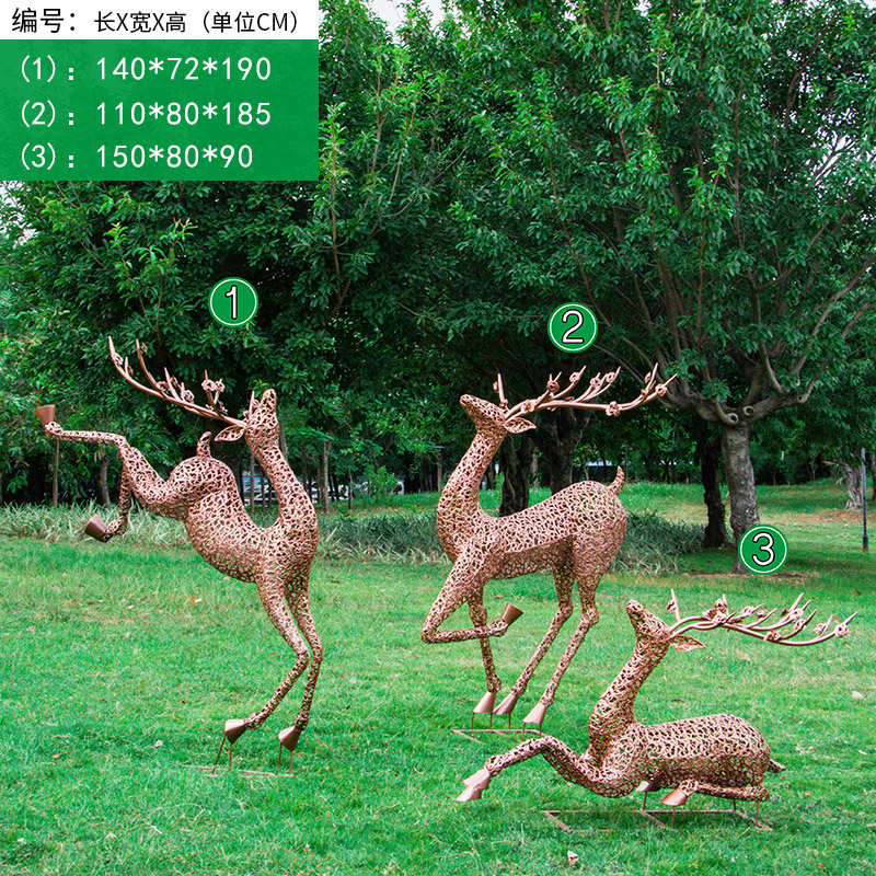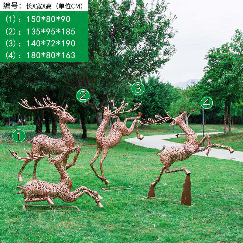 不锈钢仿铜镂空鹿雕塑户外金属发光动物园林草坪景观摆件美陈装饰