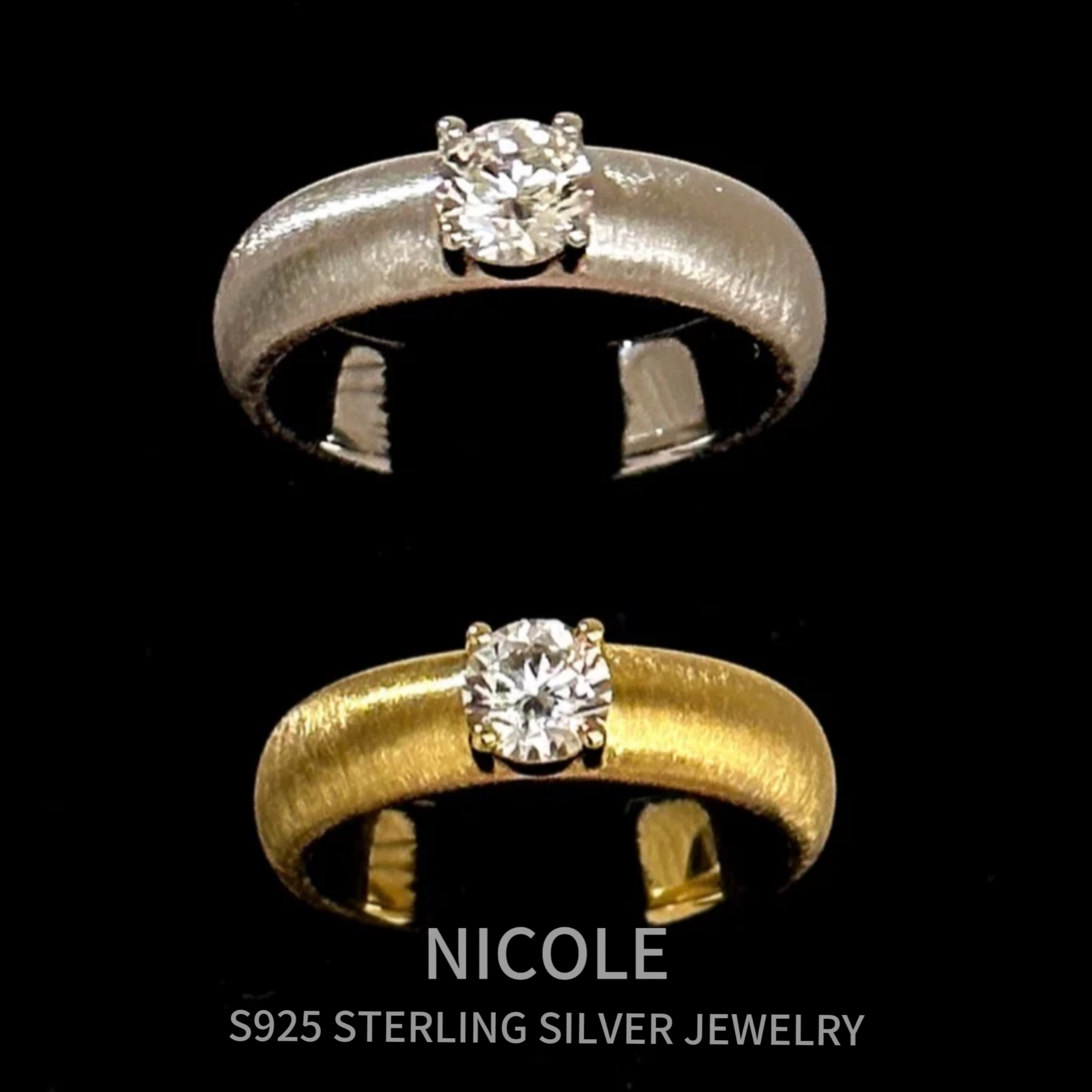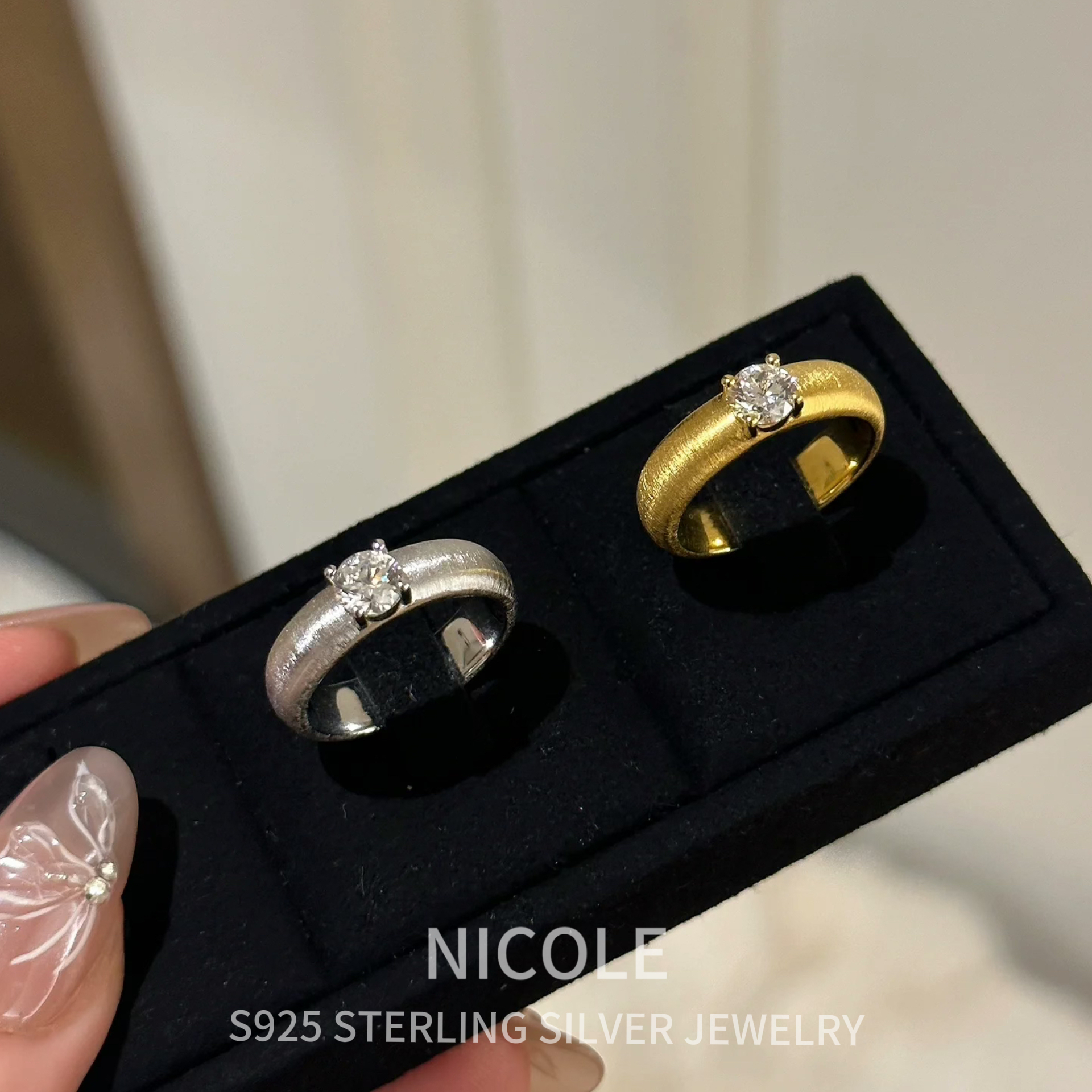 Nicole 925银镀金拉丝钻石戒指女小众设计感轻奢气质百搭指环新品