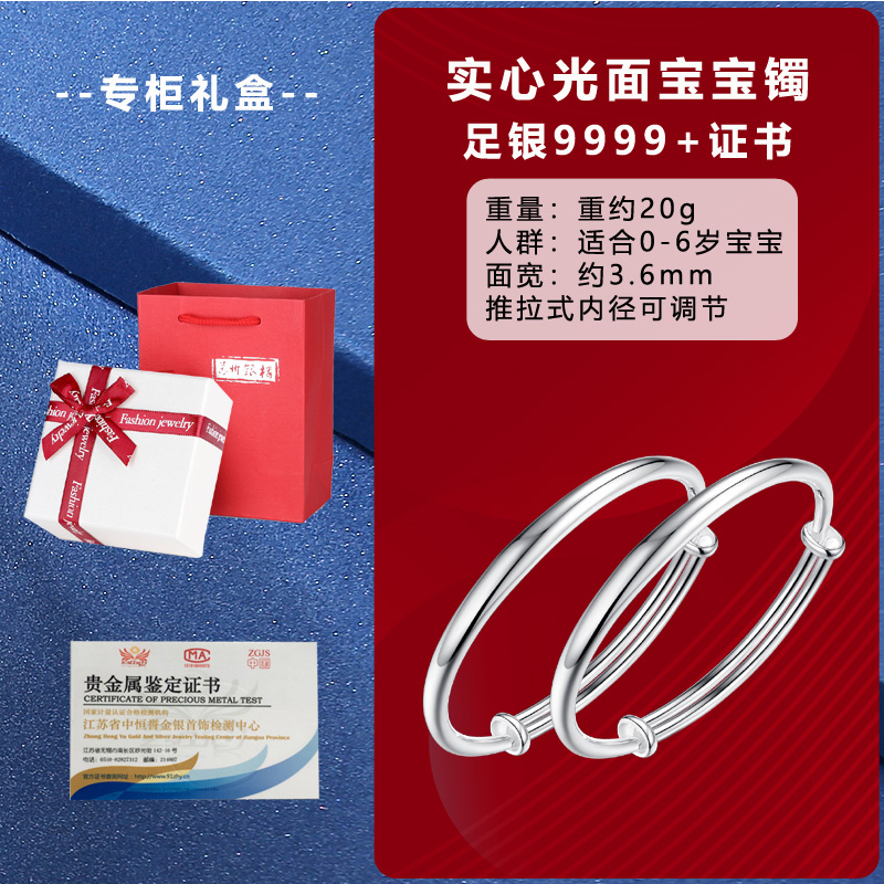 金蛇年宝宝银手镯999纯银婴儿男女孩儿童银饰 新生儿满月礼手镯