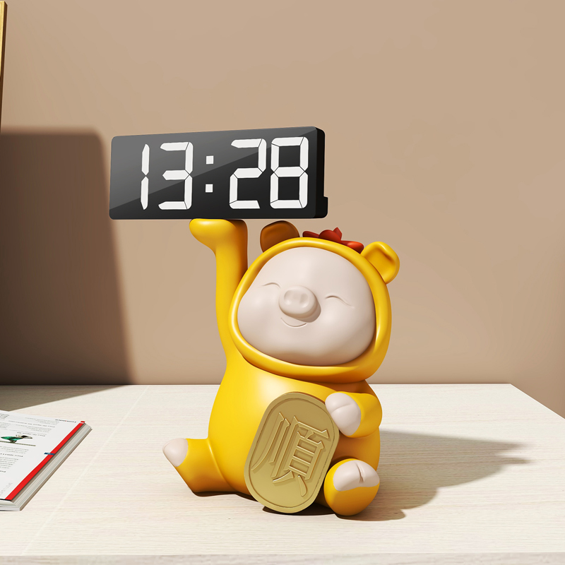 小猪摆件创意可爱数字学生闹钟客厅玄关书桌桌面装饰闺蜜生日礼品