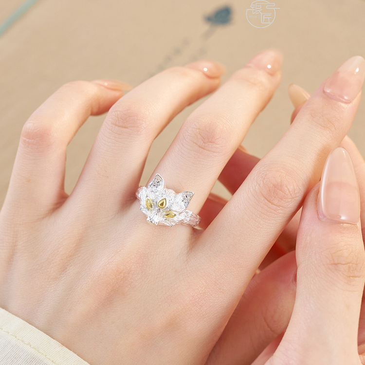 银匠 [山丘] 新中式国风狐狸足银999.9戒指女可调节高级感指环