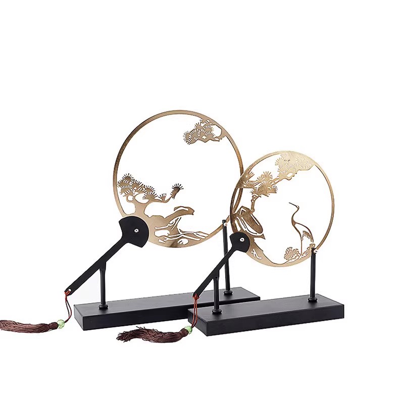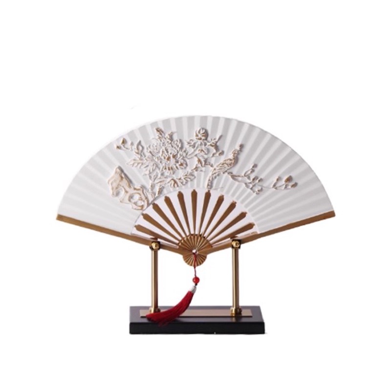 新中式桌面金属扇子工艺摆件样板房售楼处酒店古典玄关装饰品摆件