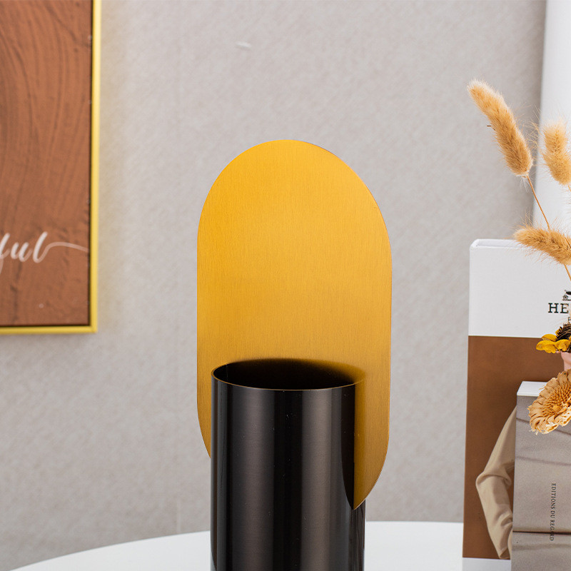 现代摆件美意式轻奢样板间家居客厅卧室装饰简金色金属干花插花器