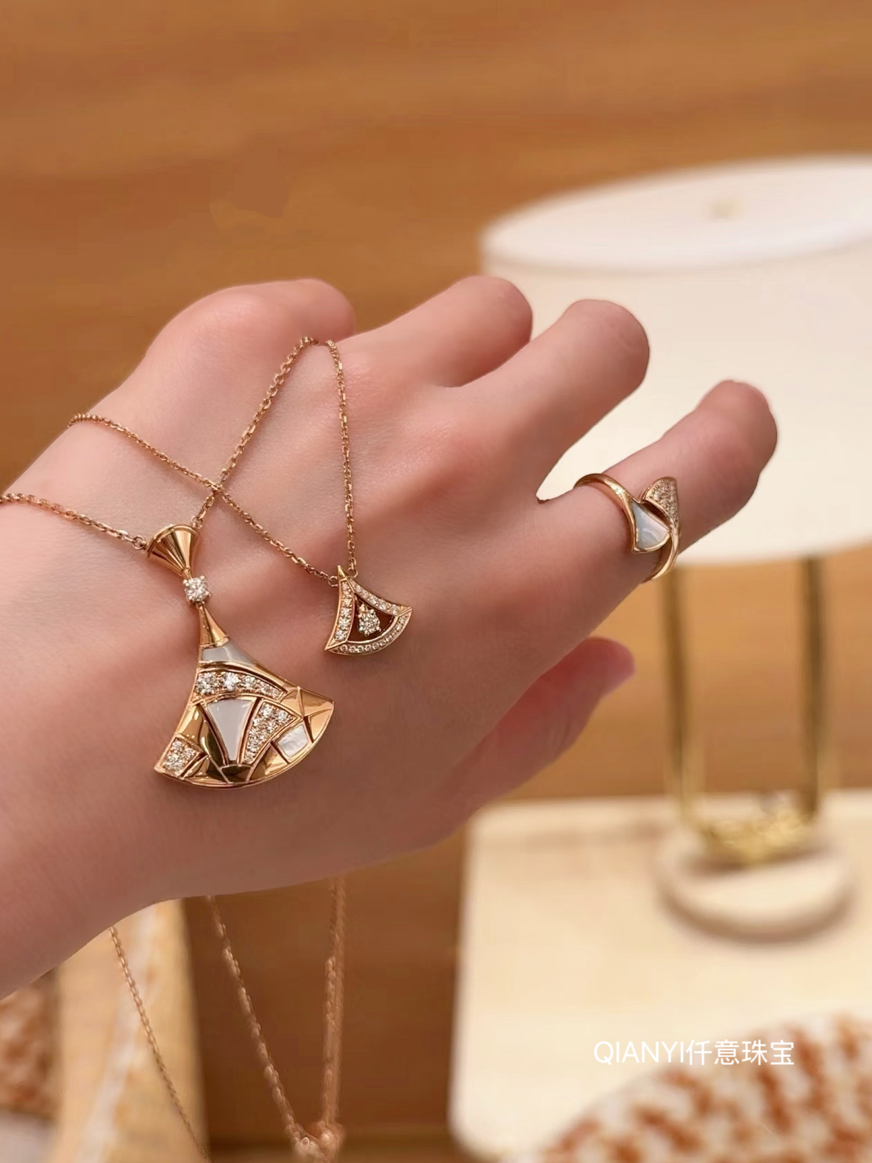 QIANYI仟意珠宝【贵妇系列】名媛千金镀18k金扇子生日宴会款项链