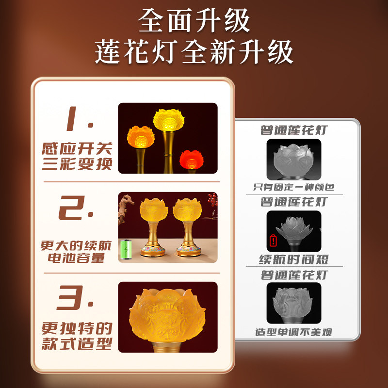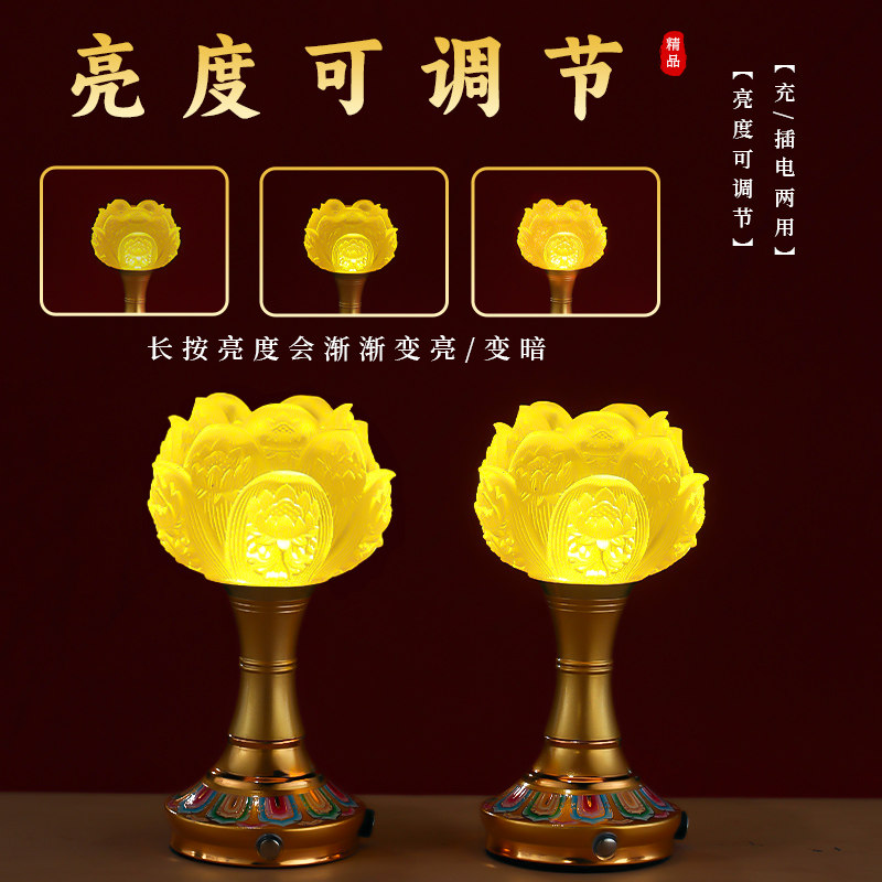 2025新款琉璃灯可触控家用莲花长明灯三彩充电供佛灯观世音佛堂灯