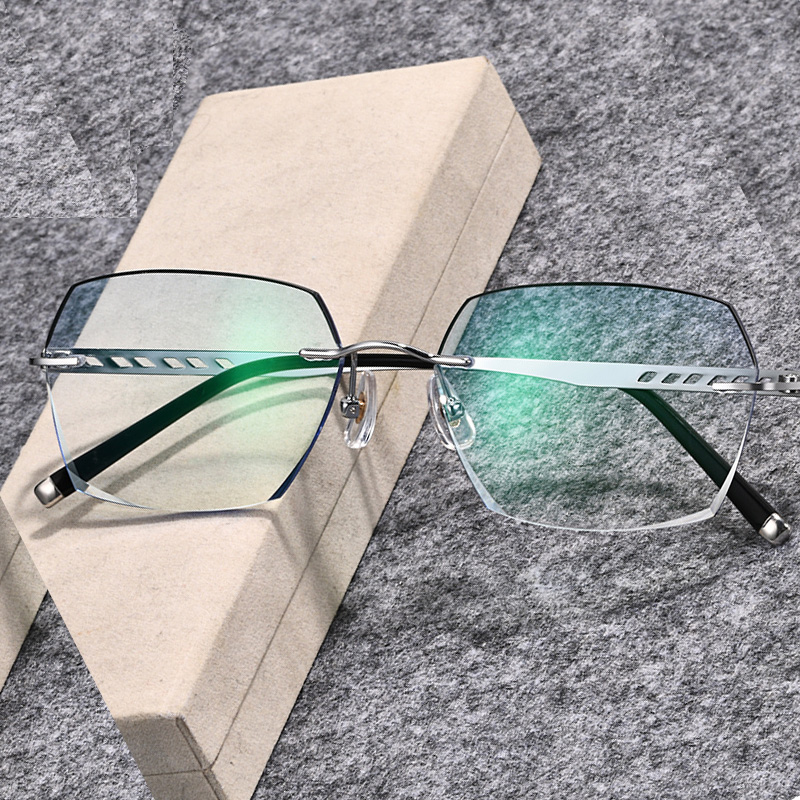 近视眼镜男有度数配大脸超轻防蓝光辐射纯钛无框近视切边变色成品