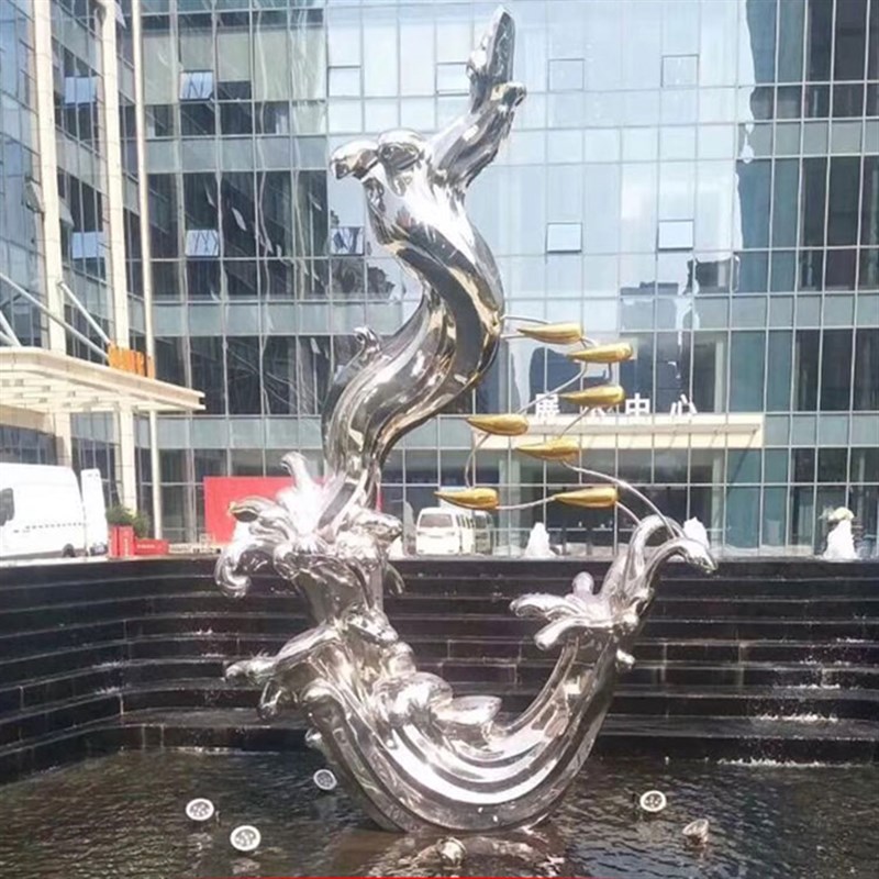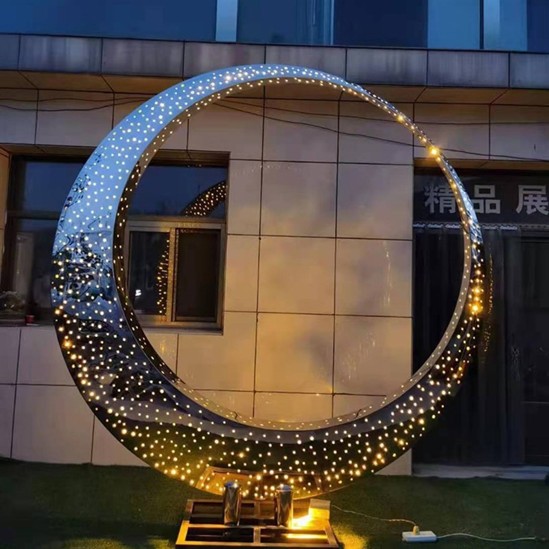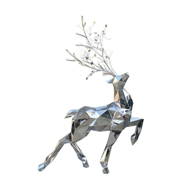 定制小鹿雕塑不锈钢几何镜面订做景观小品雕像发光月亮大型铁摆件