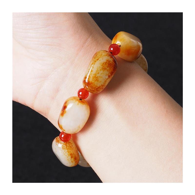 镇店之宝新疆和田玉手链籽料原石红沁皮手串白籽玉石手串男女同款