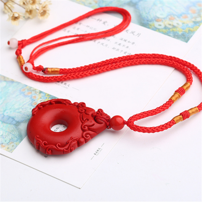 玉猪龙平安扣吊坠台湾原色朱砂帝王红平安玉龙扣项链证书